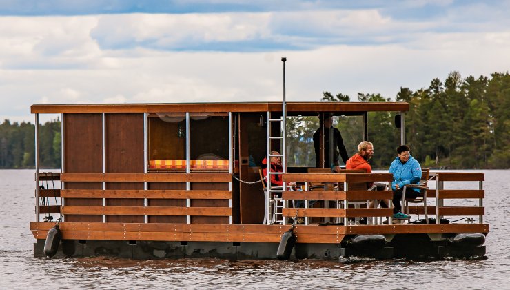 Dein Urlaub mit dem Hausfloß in der Wildnis von Schweden? Führerscheinfrei durch Nordmarken & Dalsland bequem und trocken. Jeden Abend ein traumhafter Ankerplatz. Proviant, Ausrüstung, Busanreise inkl.