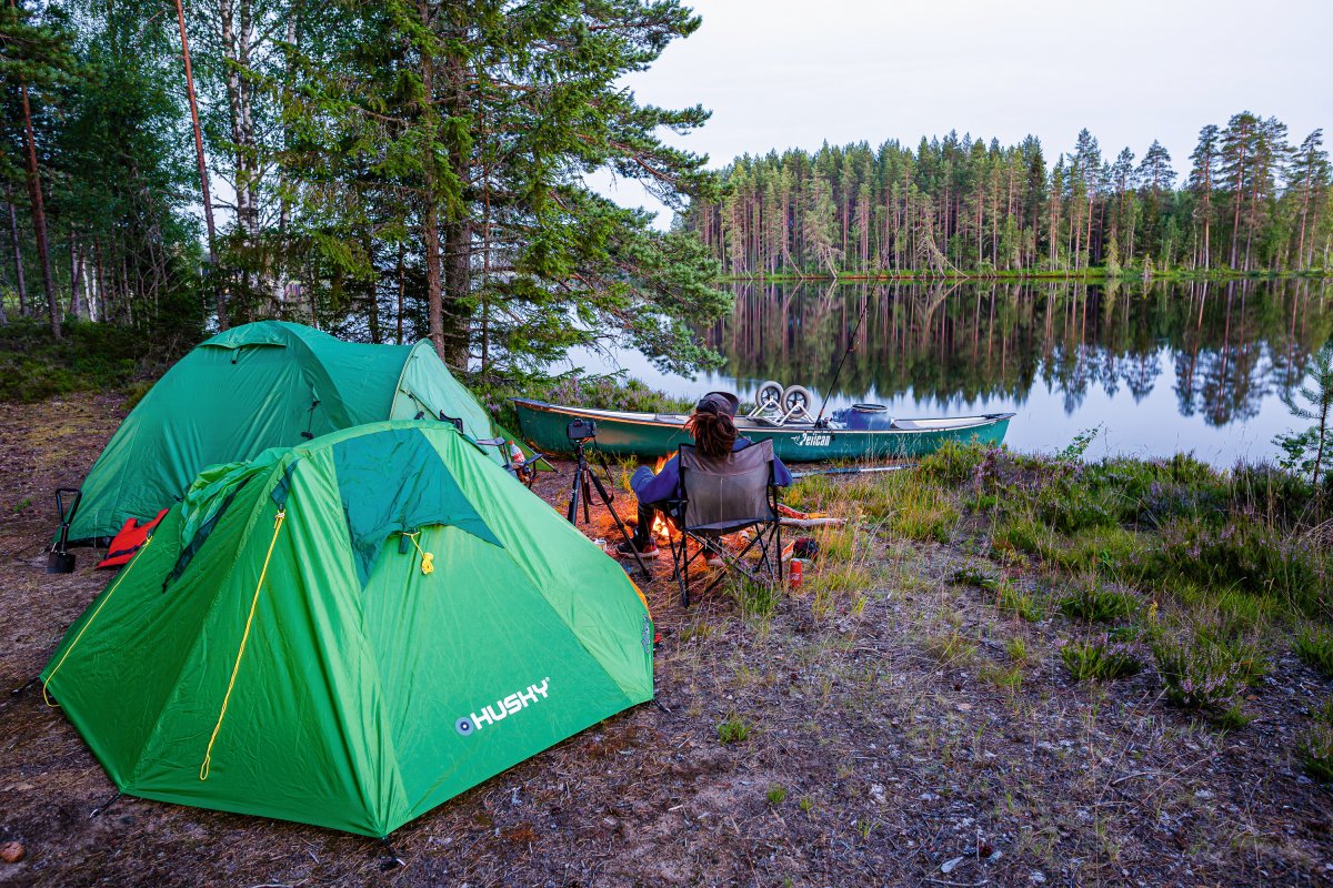 Wenn du für den ersten Tag genug hast, suchst du dir einen der idyllisch gelegenen und naturbelassenen Kanurastplätze und baust dort dein Zelt zum Übernachten auf.
