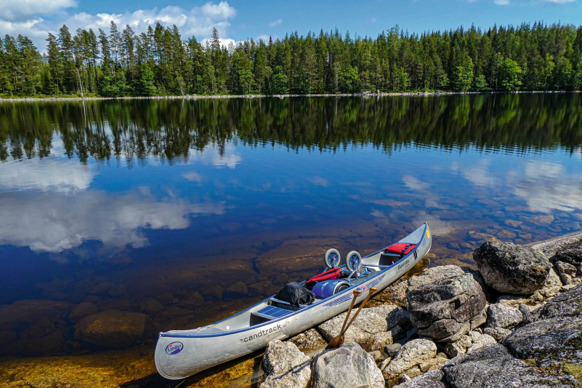 Bei einer scandtrack Kanutour trägst du dein Kanu mithilfe eines Kanuwagens über Land um, sodass du sowohl die großen Seen als auch die Vielzahl kleinerer Seen auf über 150 Km Kanustrecke entdecken kannst. Hierbei kannst du Canyons und spannende Felsformationen erblicken.
