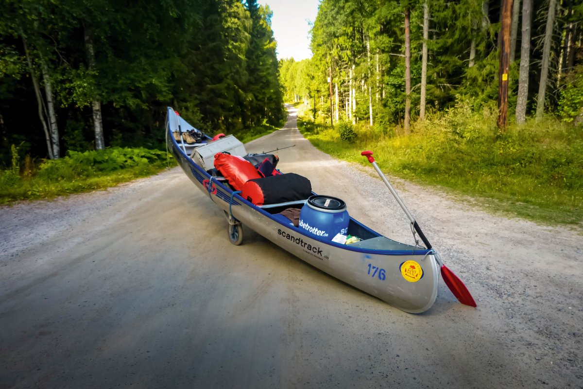 Mithilfe des Kanuwagens kannst du dein Kanu ganz leicht von See zu See umtragen.