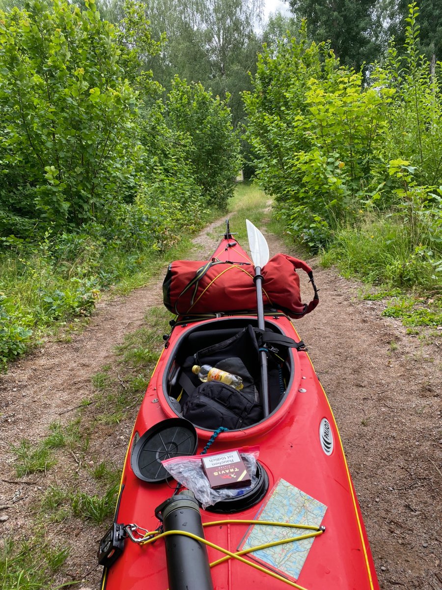 Die erste Umtragestrecke von knapp 3 km wird, mit einem kleinen Zwischenstopp für ein Eis und Einkauf in Fengersfors gemeistert.