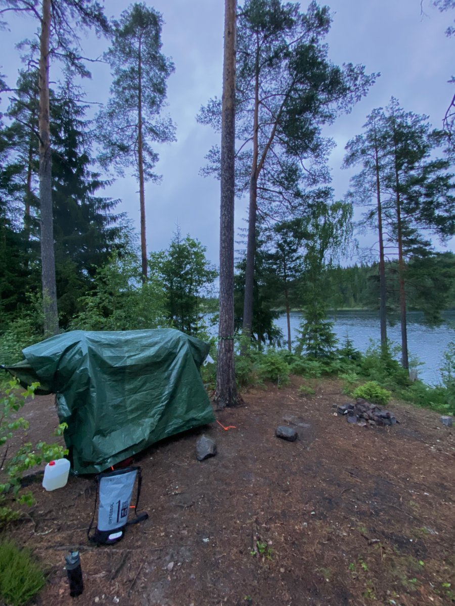 Durch die Schleuse in Vingna gelang es mir das Ziel nach 25 km zu erreichen. Ich habe jeden Tag mehr geschafft, was mich stolz machte. Die Sonne kam raus, das Solarpannel hat geladen und das erste Feuer wurde mehr oder weniger gut entfacht. Dem Dano sah man an das hier selten jemand ist, wahrscheinlich weil die nächsten Tage von der Route oft Kilometerweite Umtragestrecken auf mich warteten. Durch mein bisher zurückgelegtes Tempo merkte ich jedoch dass ich zu schnell für die geplante Tour bin und wollte am nächsten Tag eine “entspannte“ Wanderung machen um mal die Ländliche Seite Schwedens kennen zu lernen.