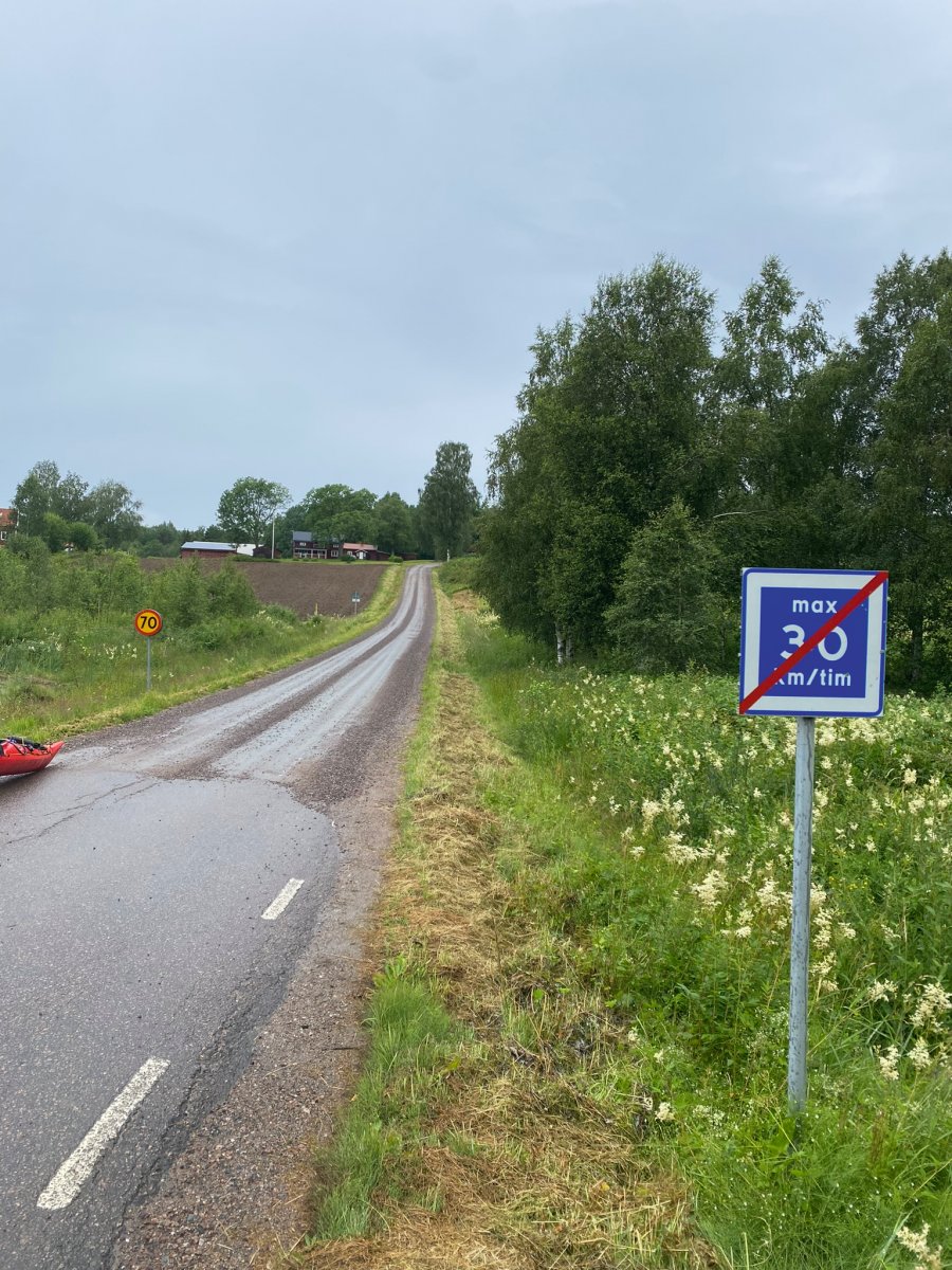 Die Schweden haben eine fantastischen Humor. Bei einer neu geteerten Straße haben sie die Geschwindigkeit auf 30km/h begrenzt aber als die Straße zu einer Schotterpiste wurde ist plötzlich 70?! :o