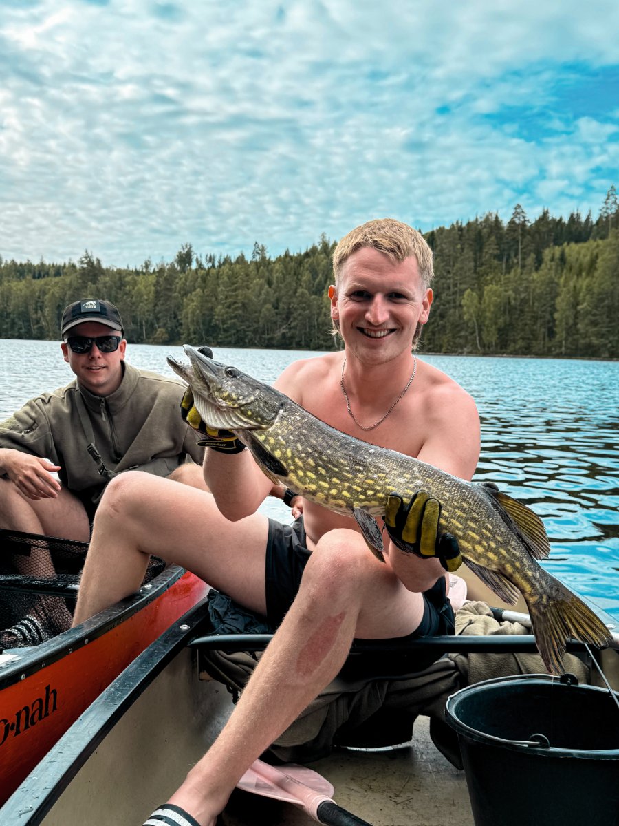 Die ersten Tage belohnten uns mit herrlichem Wetter. Die Sonne strahlte am blauen Himmel, das Wasser lag spiegelglatt da, und die Fische warteten nur auf uns. In dieser traumhaften Kulisse verging die Zeit wie im Flug: Baden, Paddeln und Angeln – was könnte man sich mehr wünschen?