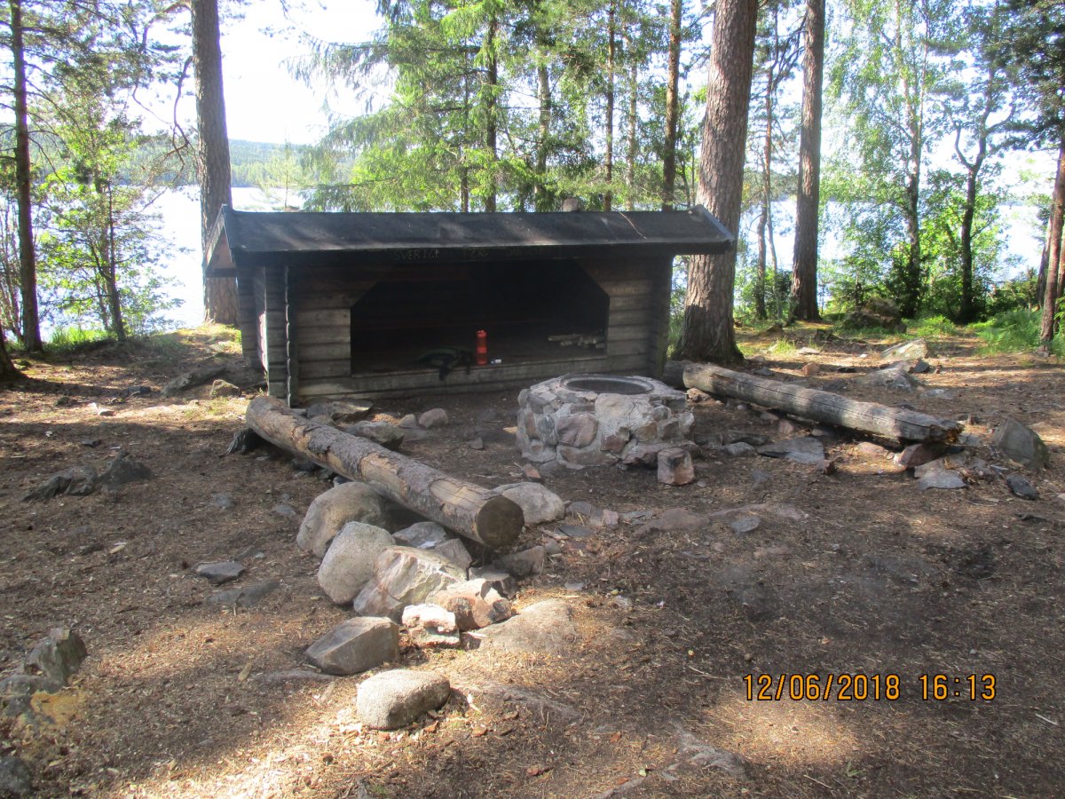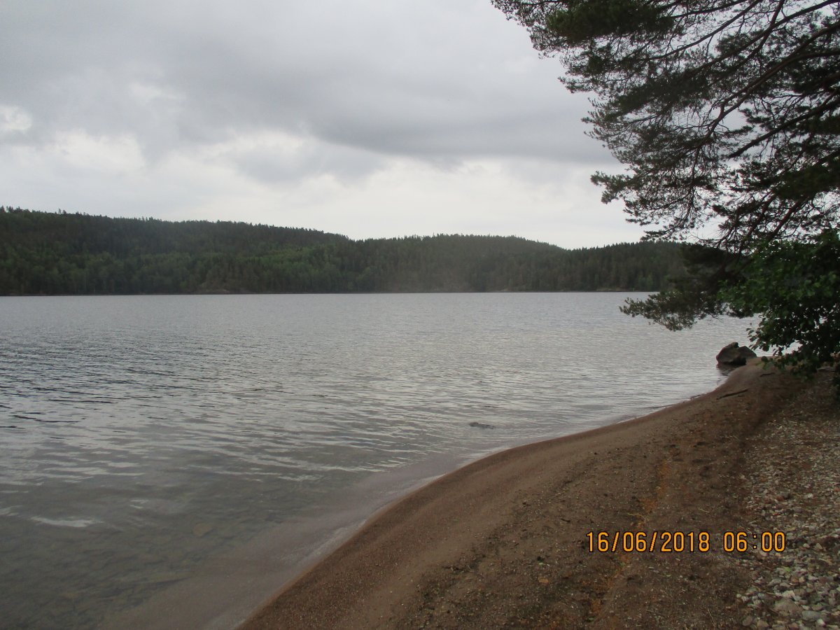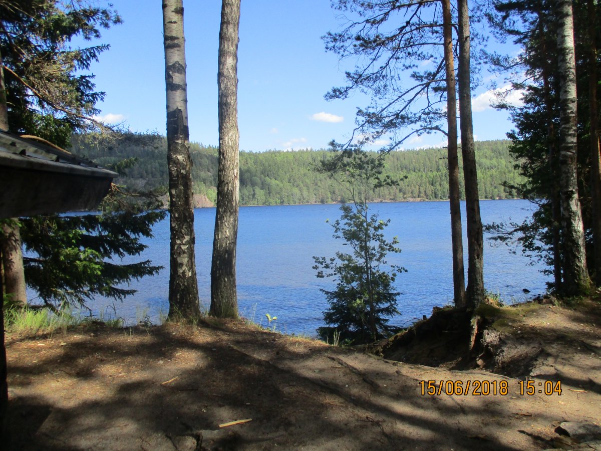 Naja und damit war dieser Tag für mich praktisch gelaufen. Beim ersten erkunden der Insel stellte ich nämlich fest, dass meine priorisierte Anlegestelle Dano 75 schon belegt war. Außerdem befand sich zwischen Dano 74 und Dano 75 eine riesige Kolonie Waldameisen. Das habe ich gemerkt als ich mitten drinstand und die ersten mir in die Beine bissen. Später habe ich festgestellt, dass die Masse an Ameisen ein eigenes Geräusch erzeugt. Es raschelt richtig, wenn die emsigen kleinen Arbeiter in so großer Zahl durch die Gegend wuseln. An Dano 74 konnte ich erneut in einer Schutzhütte schlafen und musste wenigstens mein Zelt nicht aufbauen. Dafür lag mein Kajak etwa 80 Meter von meinem Schlafplatz entfernt. Der Boden des Sees ist mit Steinen bedeckt, die natürlich alle mit Algen überzogen und somit sehr glitschig waren und auch der Boden der Insel war mit auffallend vielen Steinen bedeckt. Außerdem hatte ich einen Durchhänger, die biologischen Toiletten stanken erneut zum Himmel und überall um mich herum summte es (am Dano aber wenigstens nur in der Luft und nicht am Boden). Trotz angrenzendem größeren Vogelschutzgebiet verlief die Nacht aber ruhig und ich hörte nicht ständig hysterische Möwen kreischen.