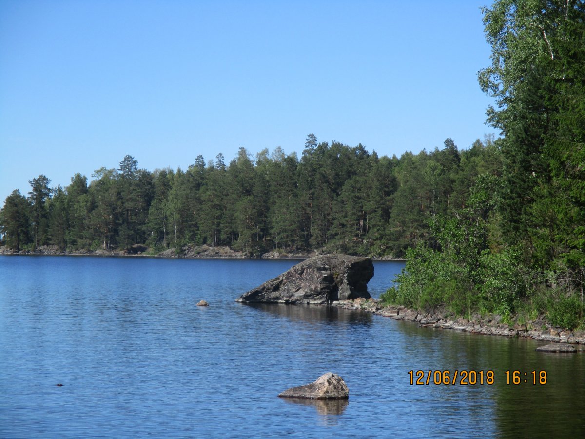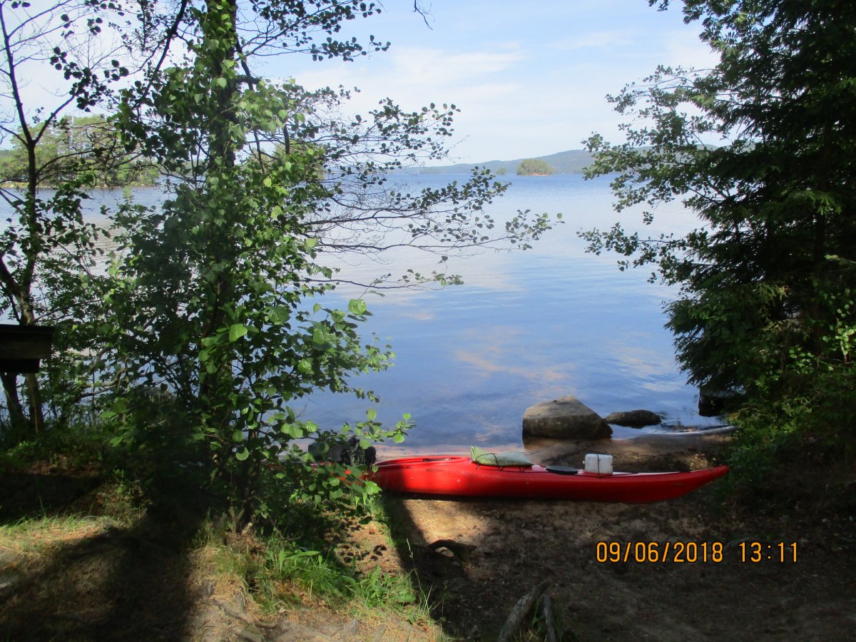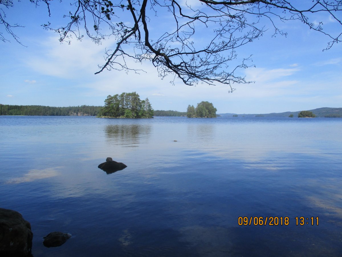 Naja und damit war dieser Tag für mich praktisch gelaufen. Beim ersten erkunden der Insel stellte ich nämlich fest, dass meine priorisierte Anlegestelle Dano 75 schon belegt war. Außerdem befand sich zwischen Dano 74 und Dano 75 eine riesige Kolonie Waldameisen. Das habe ich gemerkt als ich mitten drinstand und die ersten mir in die Beine bissen. Später habe ich festgestellt, dass die Masse an Ameisen ein eigenes Geräusch erzeugt. Es raschelt richtig, wenn die emsigen kleinen Arbeiter in so großer Zahl durch die Gegend wuseln. An Dano 74 konnte ich erneut in einer Schutzhütte schlafen und musste wenigstens mein Zelt nicht aufbauen. Dafür lag mein Kajak etwa 80 Meter von meinem Schlafplatz entfernt. Der Boden des Sees ist mit Steinen bedeckt, die natürlich alle mit Algen überzogen und somit sehr glitschig waren und auch der Boden der Insel war mit auffallend vielen Steinen bedeckt. Außerdem hatte ich einen Durchhänger, die biologischen Toiletten stanken erneut zum Himmel und überall um mich herum summte es (am Dano aber wenigstens nur in der Luft und nicht am Boden). Trotz angrenzendem größeren Vogelschutzgebiet verlief die Nacht aber ruhig und ich hörte nicht ständig hysterische Möwen kreischen.