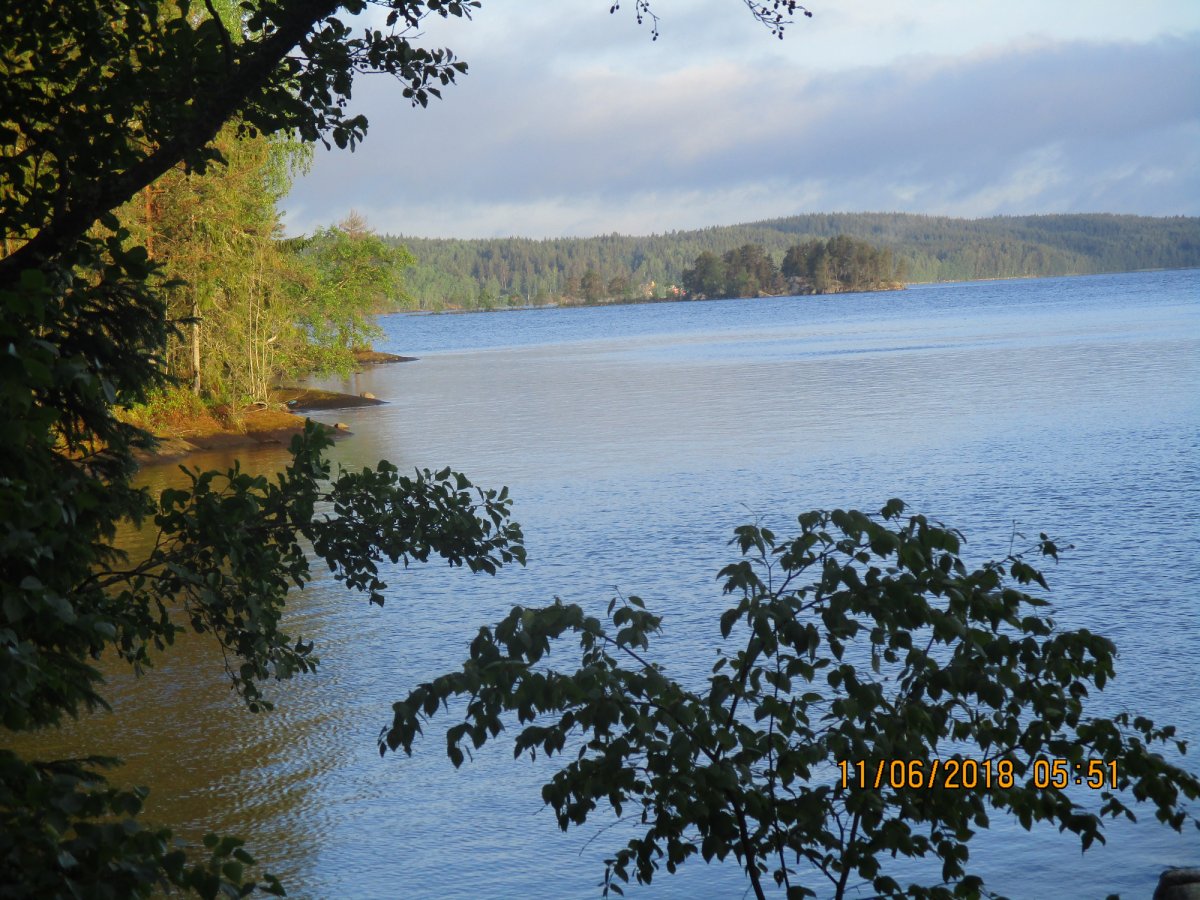 An meinem theoretisch 4. Paddeltag war ich nicht ganz so früh wach wie am Vortag, sodass ich mein trockenes Zelt einpacken konnte und mich gegen 10 Uhr gemütlich in Richtung Schleuse auf den Weg machte. Auf dem Weg zur Schleuse sah ich eine Schlange im Wasser, welche mich im ersten Moment ziemlich erschreckte, da sie dicht neben meinem Kajak auftauchte. Sie sah mich dann aber auch, entschied, dass ich eindeutig größer und gefährlicher aussah und tauchte schnell wieder ab. In Gustavsfors erwartete mich erstmal aussteigen am Steg und Kajak irgendwie festmachen. Ich wollte mir die Schleuse doch vorher einmal ansehen bevor ich mich in die dunklen Tiefen begab und außerdem lockte eine Toilette mit Wasserspülung. Beim Anschauen der Schleuse machte ich mich erst einmal beim Schleusenwärter schlau, wie das denn alles von statten gehen sollte. Er erklärte mir ruhig aber grinsend, dass ich grade ja die einzige sei, die schleusen möchte und ja auch keiner warten würde, sodass er das Wasser für mich ganz langsam einlassen könne. Gesagt getan. Zurück zum Kajak, eingestiegen und……Moment nicht losgebunden. Also nochmal raus auf den wackeligen Steg, Kajak losgebunden, nicht mehr ganz so elegant und eindeutig wackeliger eingestiegen und auf zur Schleuse. Ging dann wirklich ganz einfach und der Schleusenwärter motivierte mich noch für den Rückweg, dass ich ja nun schon hoch geschleust wurde und ich morgen das runterschleusen sicherlich mit Bravour bestehen würde. Weiter ging es durch den Kanal in Richtung Västra Silen. Ich muss sagen, das paddeln durch den Kanal fand ich deutlich angenehmer als auf dem See. Man konnte in Ruhe links und rechts das Ufer betrachten, an dem ich zwar keine Tiere beobachten konnte, aber ich fühlte mich doch irgendwie „näher dran“. Die Mündung des Kanals in den See war für mich mit den vielen kleinen Inseln sehr verwirrend, letztlich fand ich aber doch meinen Weg zum Dano 74. Leider gab es hier keine schöne Anlegestelle mit Sand für mich sodass ich diesmal deutlich mehr Kraft brauchte um mein Kajak aus dem Wasser zu bekommen.