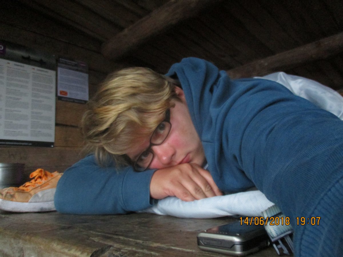 Ich blickte so in den verregneten Nachmittag hinaus, da schwamm auf einmal ein Tier, das keine Ente sein konnte zielstrebig von einem Ufer zum anderen. Etwas kleines braunes huschte aus dem Wasser, schüttelte sich kurz und war dann auch schon zwischen den Steinen verschwunden. Später wiederholte sich der Vorgang in umgekehrter Richtung und ich lief schnell zu meinen „Nachbarn“ um diese zu fragen, ob sie ein Fernglas haben. Hatten sie leider nicht, aber jegliche Zweifler werden nun von unserem unerschütterlichen Glauben überstimmt, dass wir einen Biber gesehen haben! Abends saßen wir noch zusammen in der Runde, ließen Marshmallows anbrennen und erlebten einen schönen Sonnenuntergang.