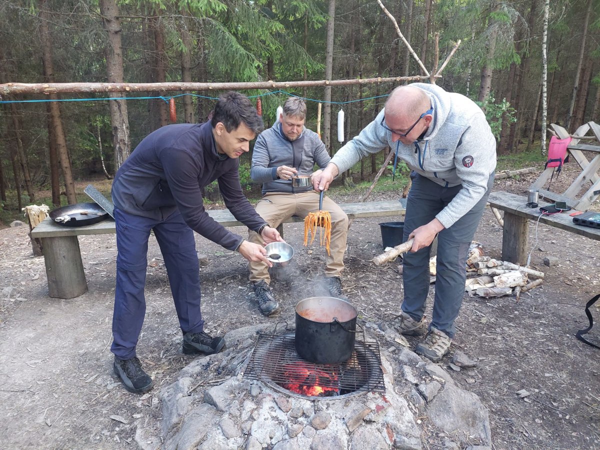 Zelte und Nothütten boten Schutz und Unterkunft für die noch hellen Nächte, auf dem Lagerfeuer wurden aus den zu Verfügung gestellten Verpflegungstonnen täglich mehrere Mahlzeiten zubereitet. Hier konnten sich die Kameraden OG d.R. Marco Braune und OG d.R. Dirk Schönwald ihrer Kreativität am Kochtopf hingeben und die übrigen Teilnehmer täglich gut versorgen. Abwechslung bot frisch geangelter Fisch und selbst gebackenes Brot.