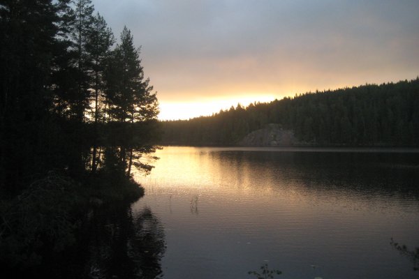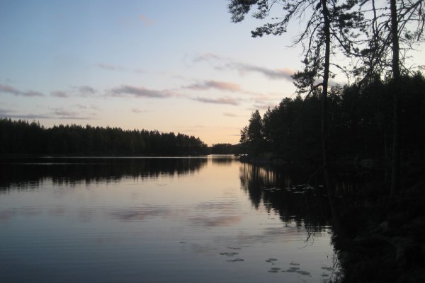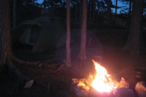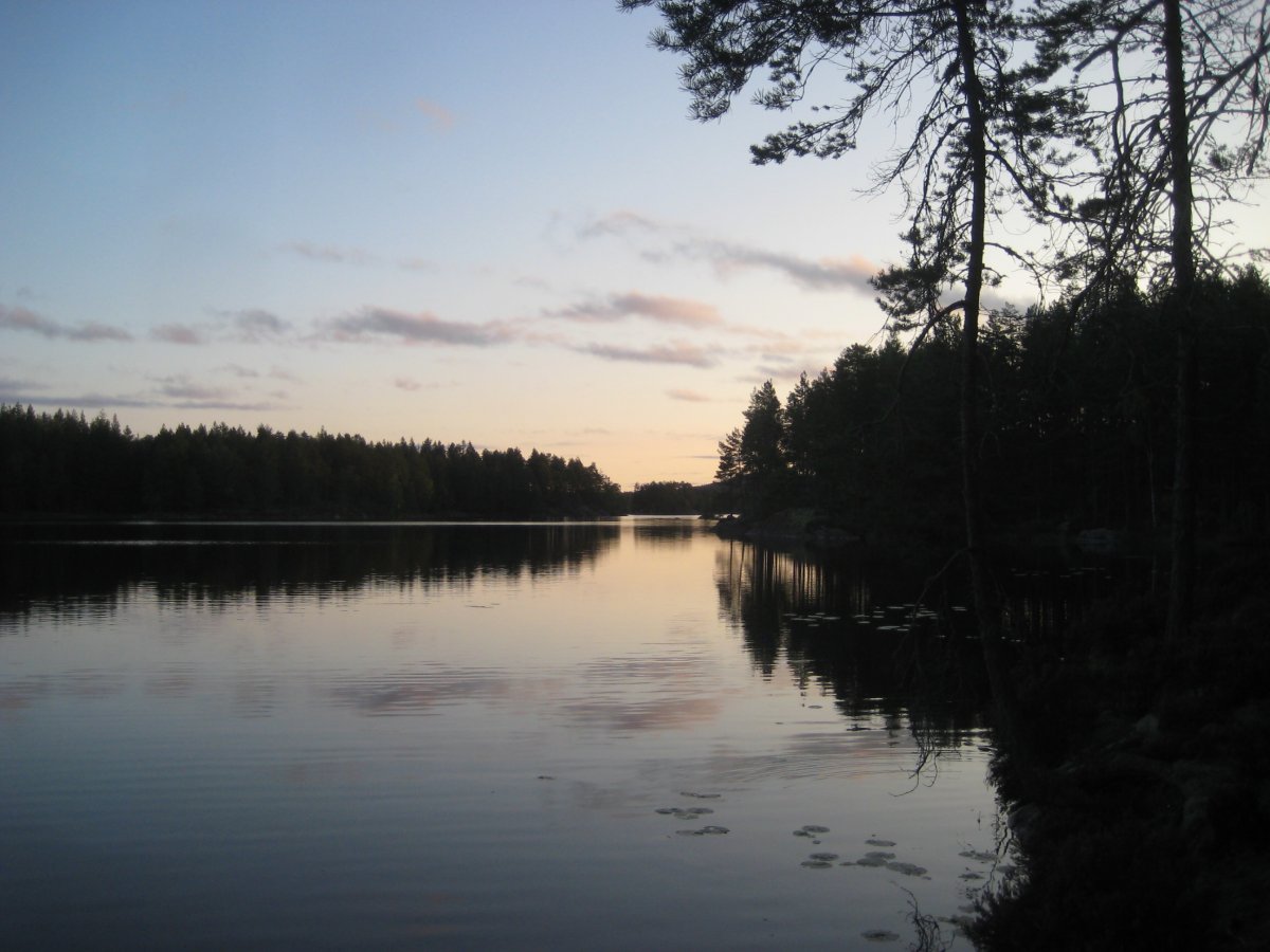Nach dem Aufstehen kommen wir sehr schnell wieder in unsere Urlaubsroutine. Raus aus dem Zelt, Kaffeewasser aufstellen und erst mal ins Wasser springen. So erfrischt schmeckt das Frühstück gleich doppelt so gut. Wir packen zusammen und sind auch bald schon wieder auf dem Wasser. Wir fahren weiter entlang des Ufers in Richtung Süden bis Rämana zur ersten Umtrage unserer Tour. Nach zehn Minuten Fußmarsch fahren wir einige Hundert Meter durch den Glatjärnen, einen kleinen See und dann geht es schon wieder an Land, um nach wenigen Minuten auch schon wieder an den nächsten See, den Kvarnsich zu gelangen. Auch diesen queren wir und nach einer letzten kurzen Umtrage erreichen wir den letzten See des Tages, den I Rammingen, auf dem wir nach kurzer Suche wieder auf einer Insel eine Stelle für das Nachtlager finden. Wäscheleine, Kaffee, Baden, häuslich einrichten und schon ist es wieder Zeit für das Abendessen. Bei den zahlreichen Umtragen haben wir einige Pfifferlinge gefunden. Diese gibt es nun ganz frisch. Nach einem kurzen Sonnenuntergang knapp unter der Wolkendecke ist der Tag auch bald schon wieder zu Ende.