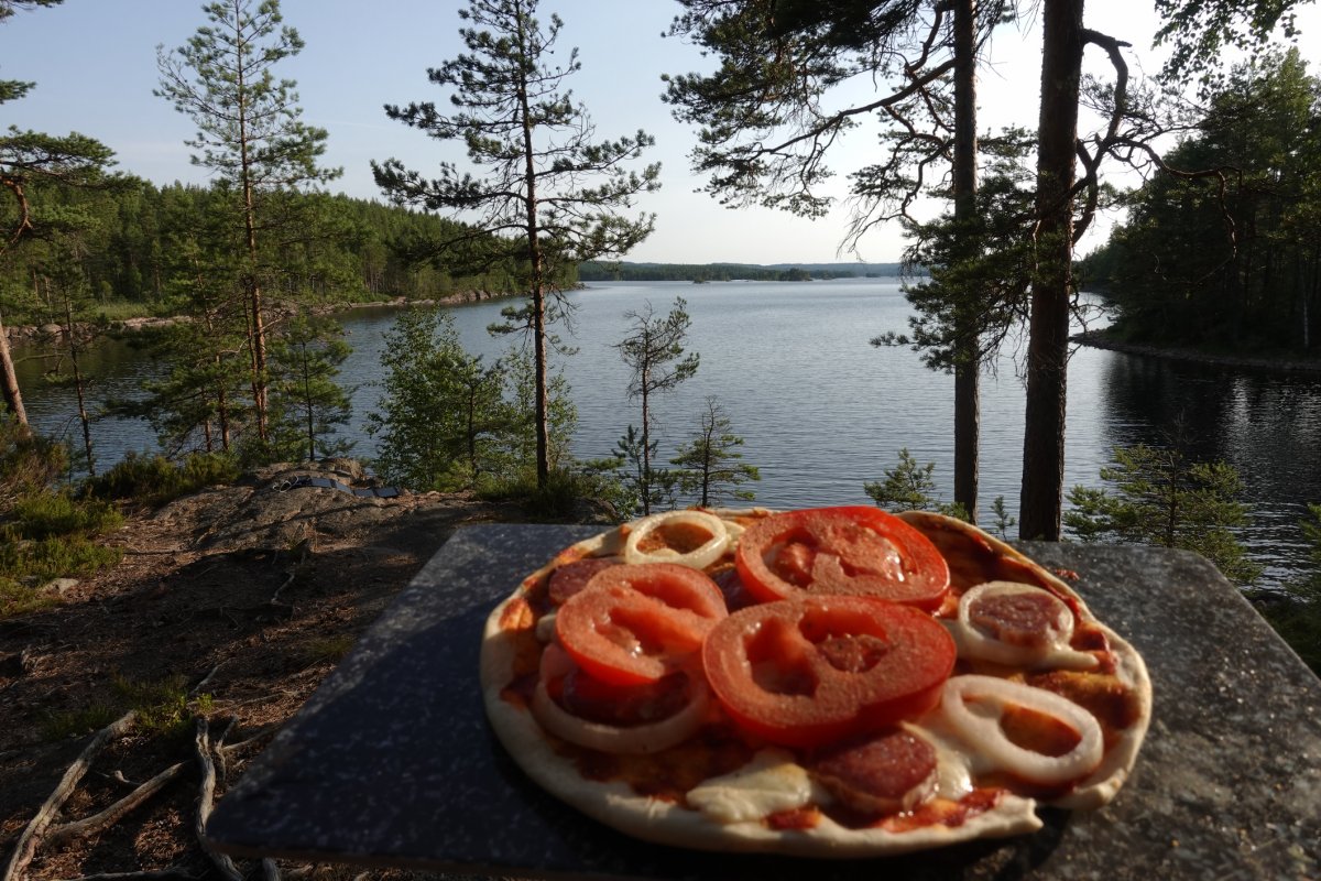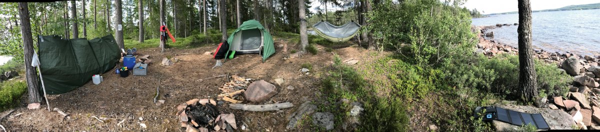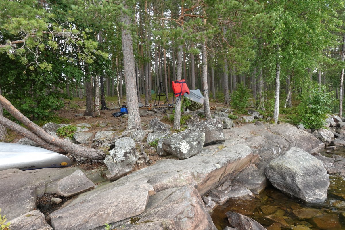 Am ersten Tag haben wir uns nach 4 km paddeln auf dem Stora Gla recht schnell nach einem Zeltplatz umgeschaut, gekocht, uns einen Überblick über das Essenspaket verschafft, und haben müde wie wir waren sehr früh die erste Nacht im Zelt begonnen.