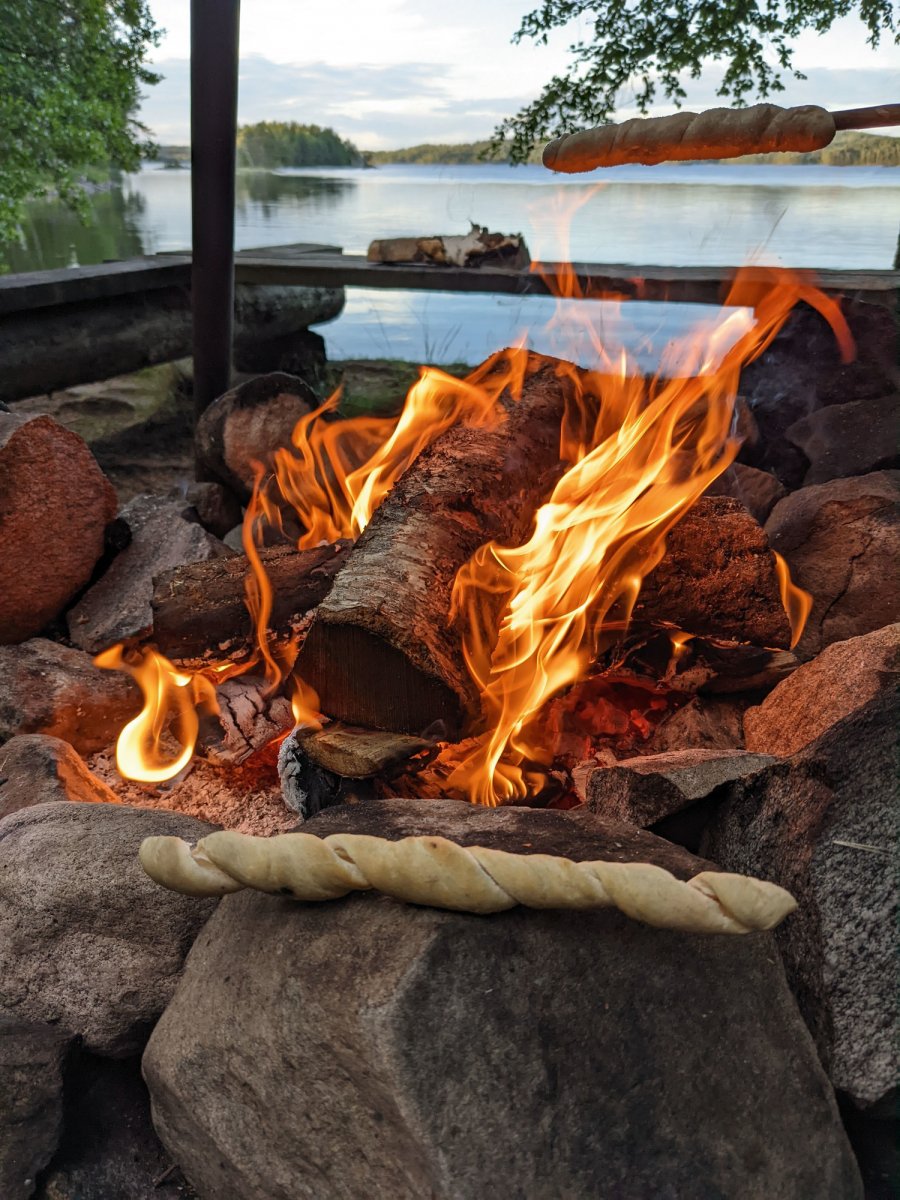 Am nächsten Morgen wurden wir von einer kleinen Bachstelze geweckt. Die Sonne schien und wir beschlossen, dass wir heute genug vom Paddeln hatten und einen Tag an Land verbringen wollten. Wir hatten Rückenwind und paddelten am Vormittag vom Rastplatz Nedre Djuvsheden (24) bis nach Lenungshammar. Dort mieteten wir ein Stellplatz für unser Kanu und Zelt auf dem Campingplatz, aßen Mittag im Café Karl, machten eine kleine Wanderung, genossen den sonnigen Tag und mieteten die Sauna vom Campingplatz von 20:00 bis Mitternacht, die wir ganz für uns hatten. Uns gefiel es so gut in Lenungshammar, dass wir beschlossen noch einen Tag mit Wandern und Essen dort zu verbringen.