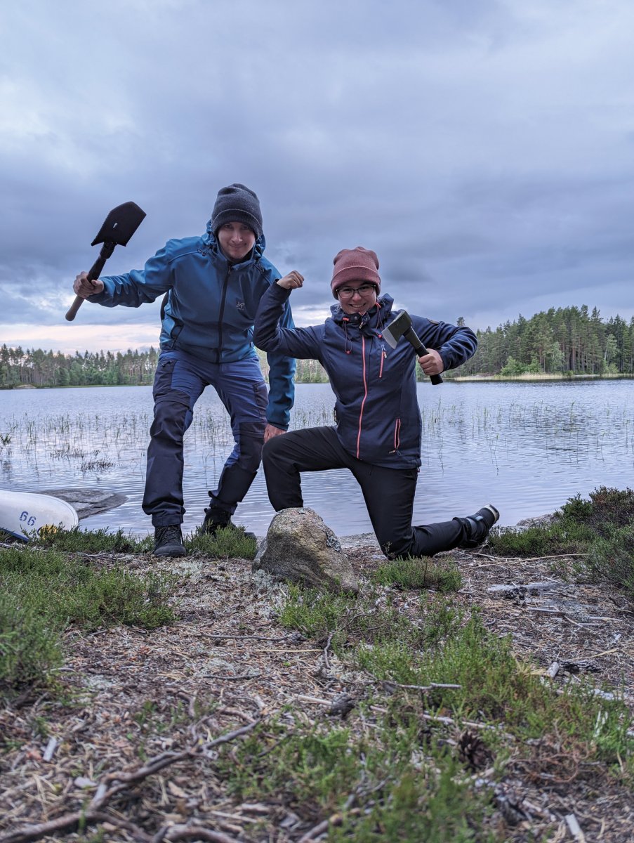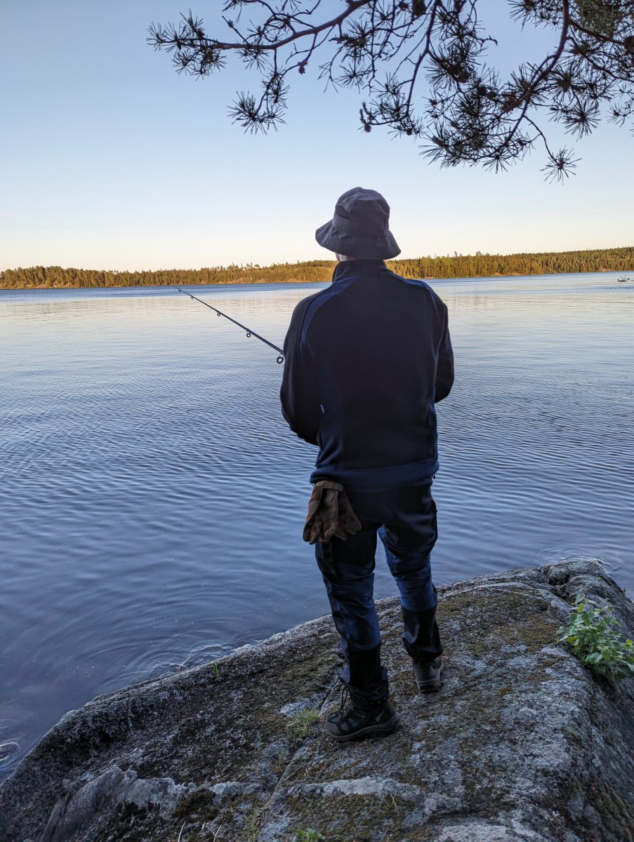Zurück an unserem Lagerplatz bemerkten wir schnell unsere neuen Nachbarn. Auch an diesem Platz hatten wir tierische Mitbewohner. In der Nähe war eine kleine Vogelschutzinsel und dort befand sich ein Nest inkl. lautstarkem Vogelbaby. Wir haben das Konzert des Vögelchens dennoch sehr genossen. Am Abend packten wir unsere Angel einmal aus und versuchten ein fangfrisches Abendessen an Land zu holen, dies war aber leider nicht erfolgreich. Dank des umfangreichen Verpflegungspakets von Scandtrack konnten wir uns dann aber doch noch mit Tortellini verpflegen. So gingen wir nicht mit leerem Magen ins Zelt, sondern tiefenentspannt vom abendlichen Angeln.