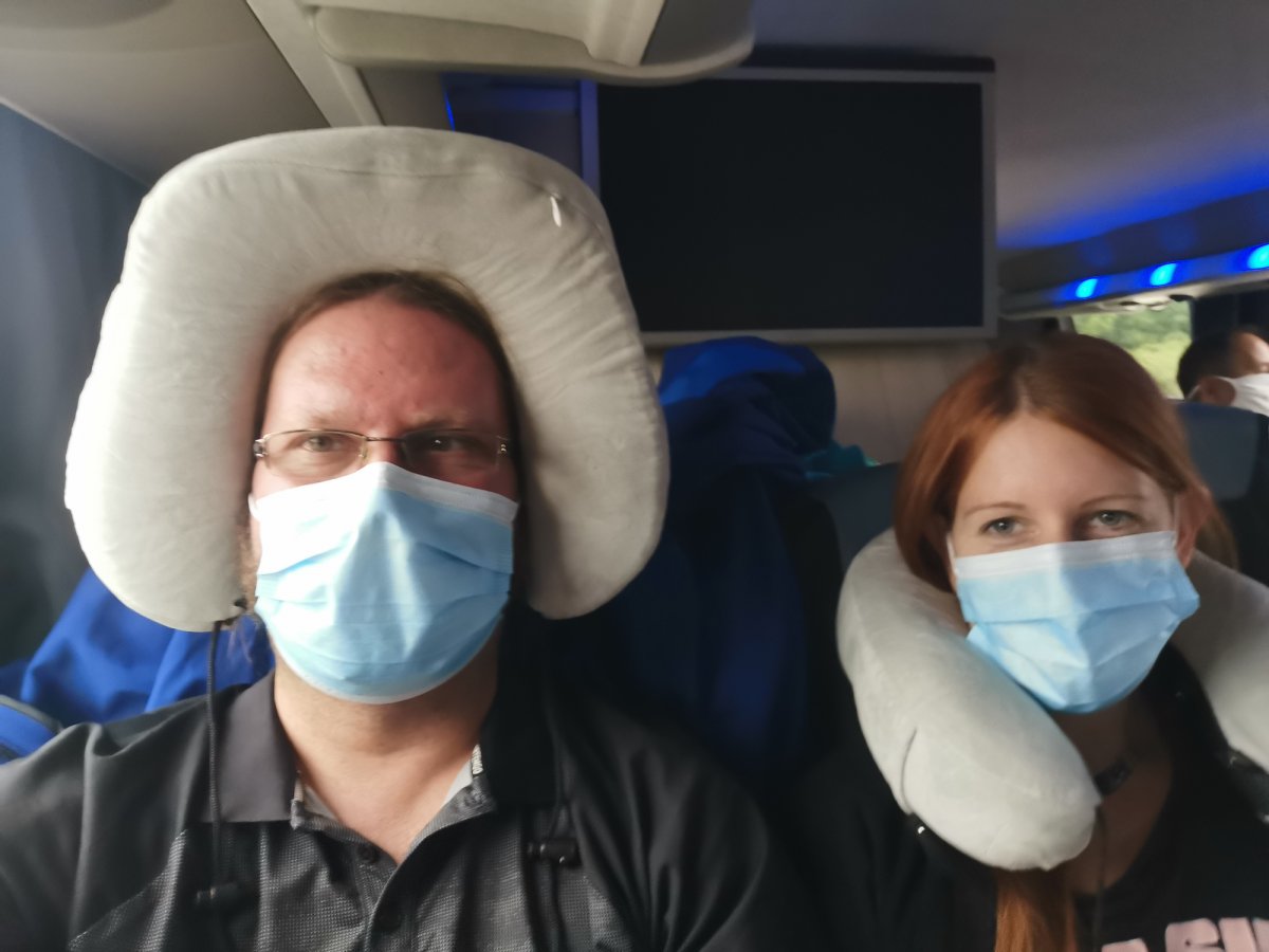 Die lange Busfahrt erwies sich überraschenderweise als sehr viel kurzweiliger als gedacht, so dass die Zeit quasi wie im Fluge verging. Dank des gut durchdachten Hygienekonzepts seitens Scandtracks, hatten wir außergewöhnlich viel Platz im Bus.