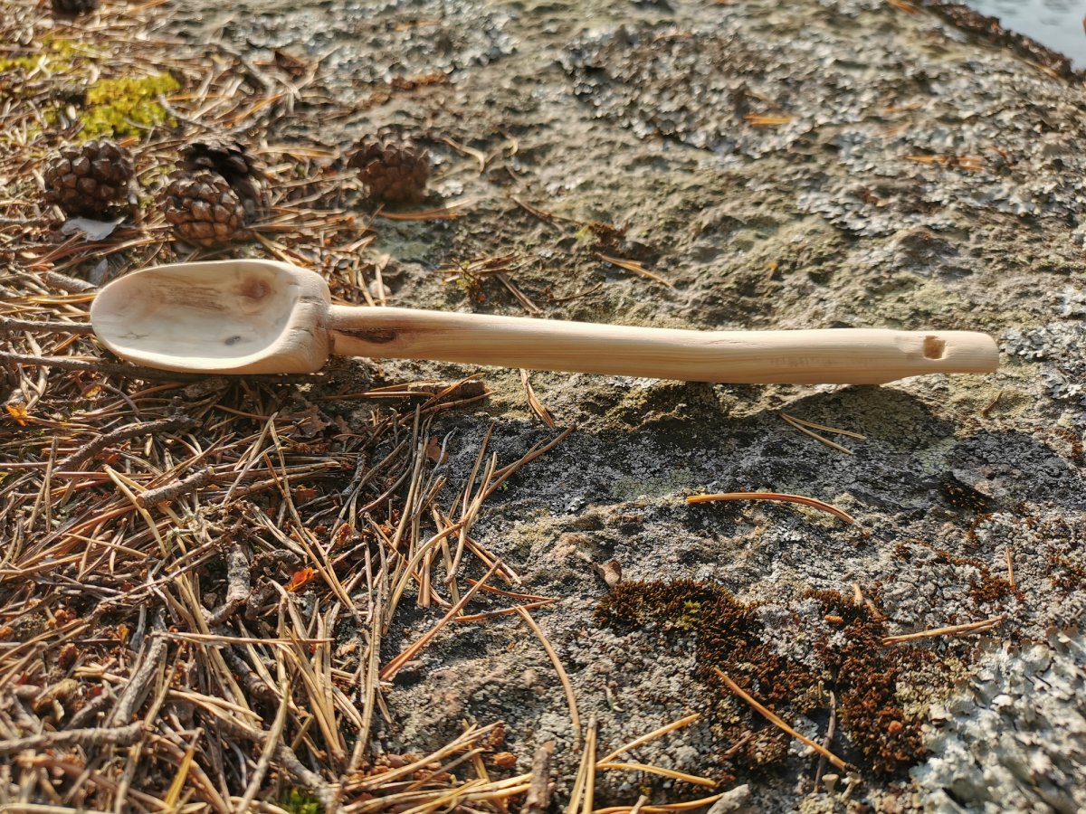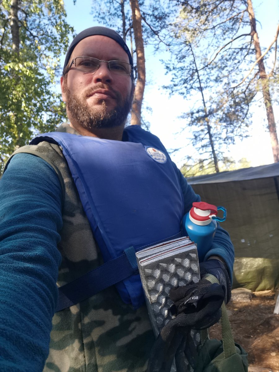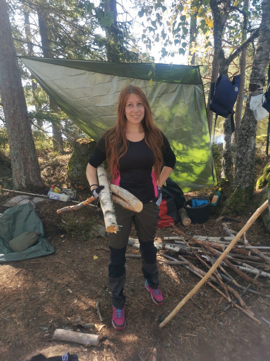 - Da unsere Insel sehr hübsch, aber auch überschaubar war, mussten wir allein schon aus dem Grund „Abendessen“ Feuerholz aus dem Umland sammeln. Dabei war uns wichtig, nur Totholz zu finden und vor Ort zurechtzusägen, um es dann später in unserem Camp mit der Handaxt zu spalten.
