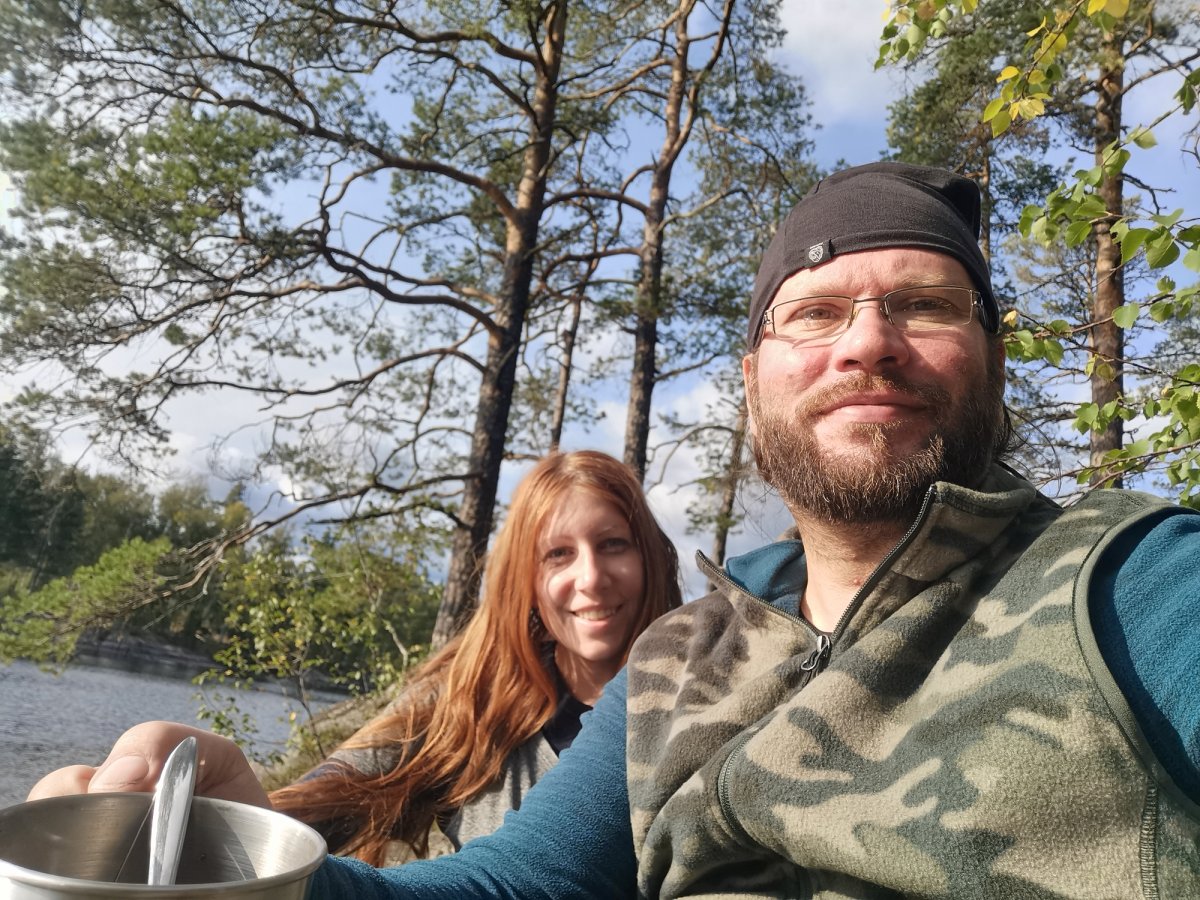 Nachdem Wackenmotto „Rain or Shine“ haben wir eine grandiose Zeit in Schweden verbracht. Wir haben immer zusammengehalten und sind jeden Abend erschöpft, aber super glücklich, in die Schlafsäcke gefallen. Komischerweise müssen wir uns zugestehen, dass es für uns, obwohl wir Genderrollen nicht mögen, sinnvoll war, dass André sich um Shelterbau, Holz und Feuer gekümmert hat, während Franzi sich ums Schnibbeln, Spülen, Tagebuchschreiben und Lächeln sorgte. So hat sich Franzi z. B. um das Frühstück gekümmert, während André unser Abendessen auf offener Flamme zubereitet hat.