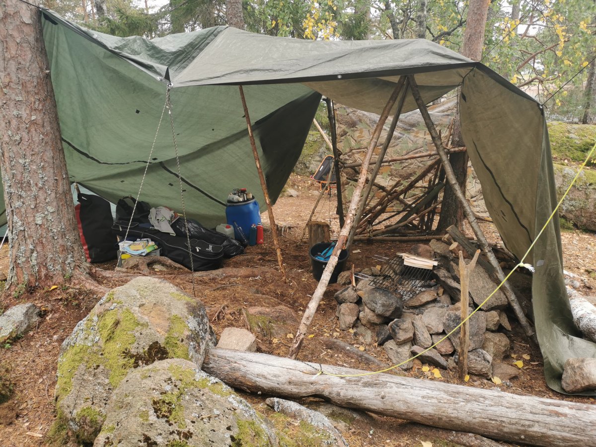 Wir hatten neben der zusätzlich gebuchten Plane noch 2 Tarps dabei. Folgende Tage hat André immer wieder unser Lager neu an den Wetterverhältnissen angepasst. Soll heißen: Mit Wind- und Wetterradar, Erfahrung und Köpfchen… die Tarps und somit unseren Shelter angepasst.