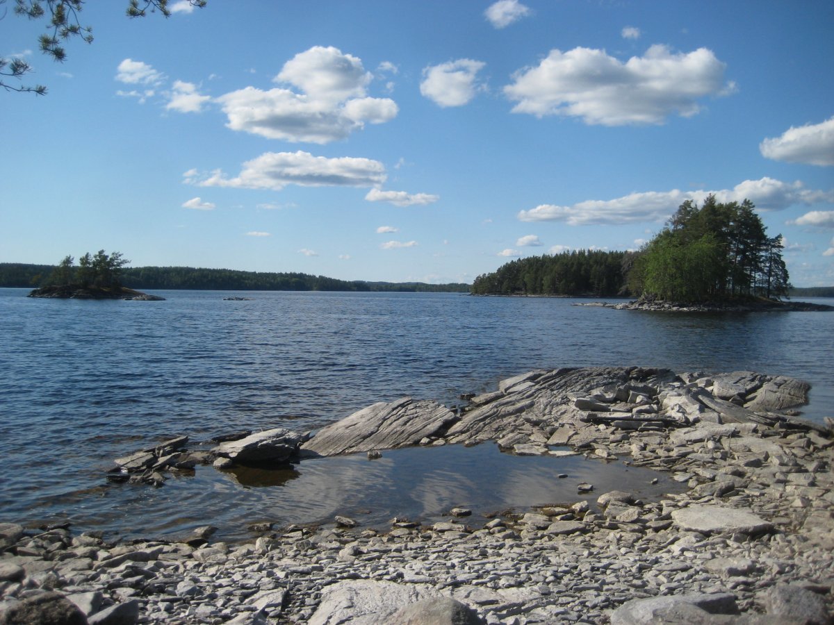 Für den Mittwoch haben wir uns nicht zu viel vorgenommen. Das Wetter ist unbeständig und daher belassen wir es bei einem Trip mit rund 12km. Nach einem leckeren Kaffee und einem Bad im See genießen wir noch eine kurze Fahrt durch die Bucht von Angarna. Von dieser aus soll es auch eine Canutour in Richtung Westen geben. Da wir aber noch kein Kartenmaterial gefunden haben, schippern wir am Ufer entlang und suchen einen Hinweis auf eine Umtragestelle. Leider ohne Erfolg.