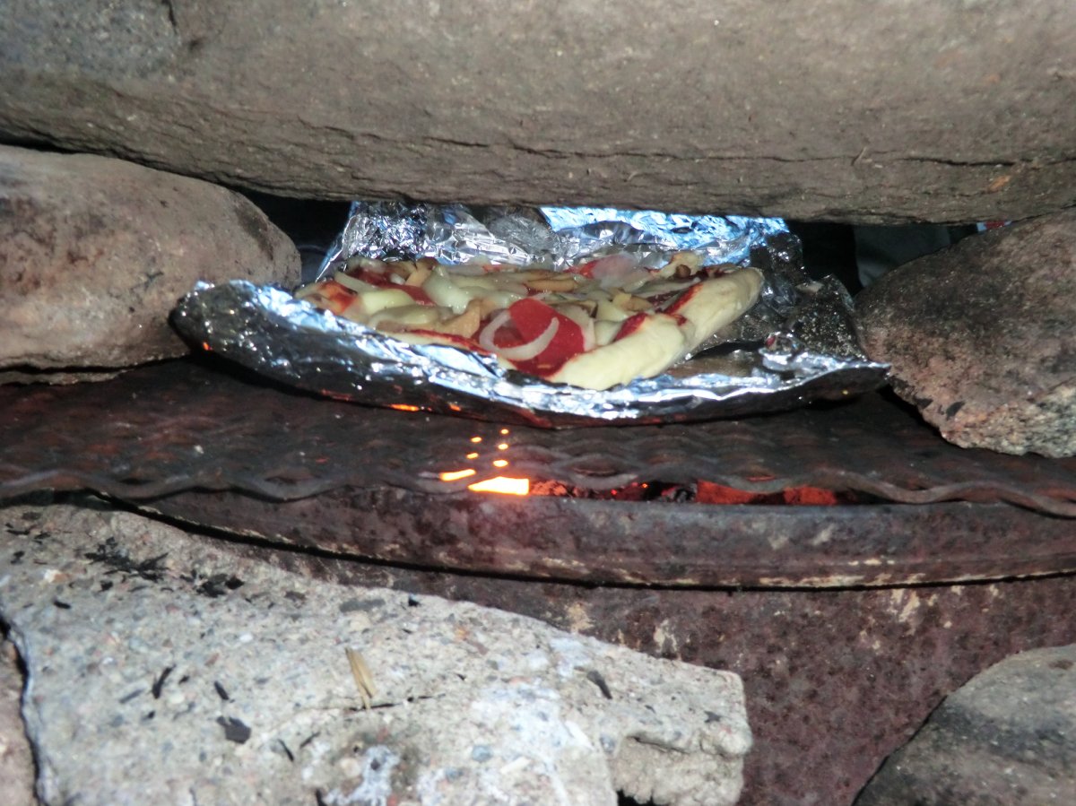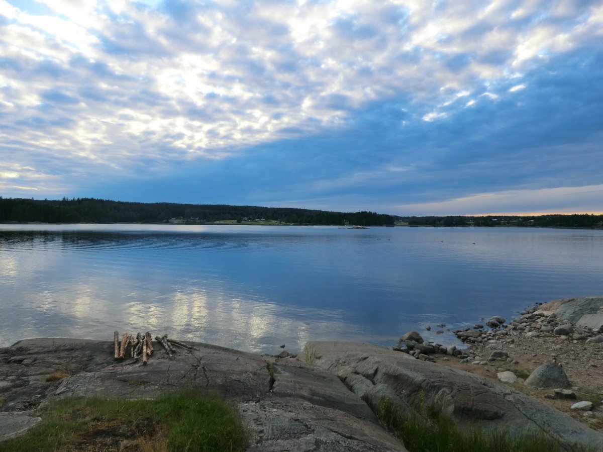Auch das Kochen am Lagerfeuer, diesmal leider auch häufiger auf dem Gaskocher, kam nicht zu kurz. Von Nudeln mit Tomatensauce über Bratkartoffeln und Tomaten-Gurken-Salat und Pizza bis zu Pfannkuchen war alles dabei. Diesmal gab es aber Apfel-Pfannkuchen. Denn unsere Waldbeersuche war in diesem Jahr nicht so erfolgreich. Unser Highlight war natürlich der von uns mitgebrachte Filterkaffee, den wir uns jeden Morgen beim ausgiebigen Frühstück gönnten. Das Wetter war zwar nicht so sommerlich wie im vergangenen Jahr, aber fast die ganze Woche heiter oder sonnig und auch die geplante Route fuhren wir im Laufe der Woche ab, zu unserem Glück hatten wir jeden Tag Rückenwind.