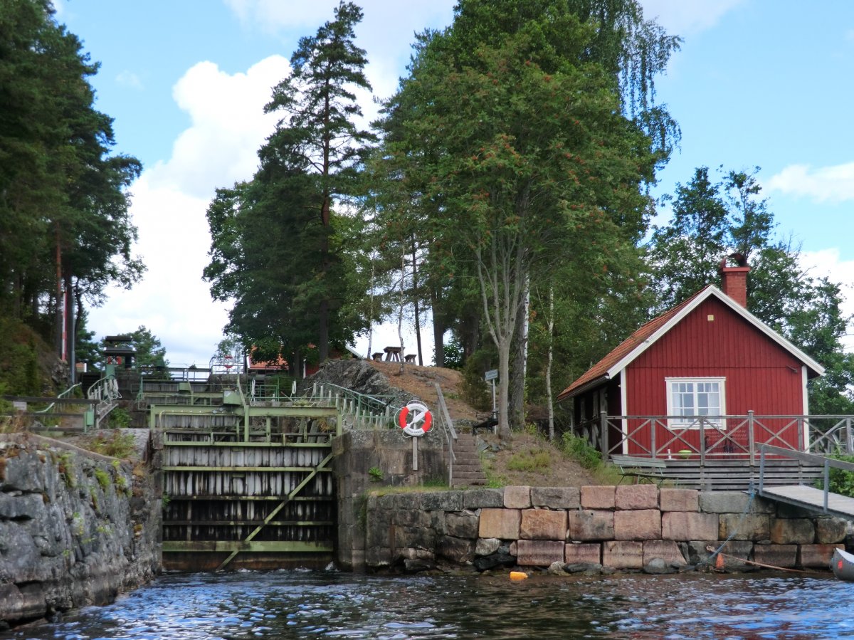Erst ging es für uns zum Stora Le. Dort sind Landschaft und Rastplätze wunderschön und das Wasser meist sehr ruhig. Wir blieben für eine Nacht an diesem schönen Fleckchen Erde, um am nächsten Tag wieder Richtung Foxen aufzubrechen. Wir hatten schließlich viel vor. Der Insel Bärön mit ihren hohen Felsen und den kleinen Sandstränden mussten wir nämlich auf jeden Fall einen Besuch abstatten. Der Blick über den Foxen und die Sonnenuntergänge sind einfach unvergleichlich schön. Von da aus fuhren wir Richtung Norden, Richtung Töcksfors. Hinter der großen, blauen Brücke sah die Landschaft tatsächlich ganz anders aus. Hier hatten wir wieder das Glück einen Rastplatz für uns zu haben. Der perfekte Tag für den Bau eines Steinofens und Pizza. Am nächsten Tag ging es schon wieder Richtung Süden. Schließlich wollten wir nochmal viel mehr von der Gegend rund um den Foxen sehen. Wir wollten entlang des westlichen Ufers des Foxens bis zur Insel Trollön in Norwegen fahren. Auf dem Weg zu unserer nächsten Übernachtung auf einem Rastplatz in der Nähe vom Autofriedhof in Båstnäs mussten wir eine Pause einlegen, weil die Wellen immer höher wurden, auch das hatten wir noch nicht erlebt. Schnell legten wir am Ufer an und entluden das Kanu. Dort warteten wir 1,5 Stunden. Weil das zweite Kanu unserer Abenteurergruppe noch ein Stück weiter gefahren war, begaben wir uns durchs Unterholz auf die Suche nach ihnen. Minutenlang liefen wir durchs Unterholz, aber die anderen konnten wir nicht finden. Dafür einen riesigen Ameisenhügel. Nach diesem Abenteuer kamen wir zum Glück recht schnell an unserem geplanten Rastplatz an. Am nächsten Tag ging es weiter Richtung Norwegen. Wie im vergangenen Jahr entdeckten wir auf einer kleinen Insel ein Greifvogeljunges. Dann ging es weiter nach Norwegen. Trollön kann man auch super zu Fuß erkunden und in kürzester Zeit von Schweden nach Norwegen und umgekehrt gelangen. Am nächsten Tag machten wir einen Zwischenstopp im Basiscamp. Unsere grünen Kanus waren leider schon von Anfang an nicht ganz dicht und es bildete sich nach kürzester Zeit auf dem Wasser eine Pfütze im Kanu. Dort bekamen wir sofort zwei neue Alukanus, mit denen wir noch schneller durchs Wasser gleiten konnten. Dann konnte es endlich wieder weiter Richtung Süden gehen. Wir wollten noch Orte erkunden, in denen wir in den letzten Jahren nicht waren. Das bedeutete Umtragen oder durch die Schleuse fahren. Keine schwere Entscheidung. Voller Vorfreude fuhren wir den Kanal zur Schleuse entlang. Schon in der dritten Schleusenkammer eröffnet sich ein toller Ausblick auf den See Lelång. Nach 1,5 Stunden hatten wir die Schleuse in Lennartsfors passiert und befanden uns auf dem See direkt vor einer ziemlich dunklen Regenwolke. Uns blieb keine Wahl, da mussten wir durch. Aber das Fahren durch einen frischen Sommerregen hat auch irgendwie Spaß gemacht. Leider regnete es auch den Rest des Tages, sodass wir nochmal unsere Unterstandbaukünste, die wir auf unserer ersten Reise entwickelten, einsetzen durften. Am nächsten Tag wurden wir vom Sonnenschein geweckt und wagten uns noch ein paar Kilometer weiter Richtung Süden. Die beste Entscheidung überhaupt. Endlich hatten wir nochmal eine Feuerstelle und konnten den letzten Abend in der Wildnis am Lagerfeuer, mit Stockbrot und in der Hängematte verbringen. Und auch am Abreisetag ließ uns das Wetter nicht im Stich. Beil tollstem Wetter traten wir den Rückweg zum Basiscamp an. Wieder ging es durch die Schleuse in Lennartsfors und da war unser Abenteuer Wildnis auch schon fast vorbei.