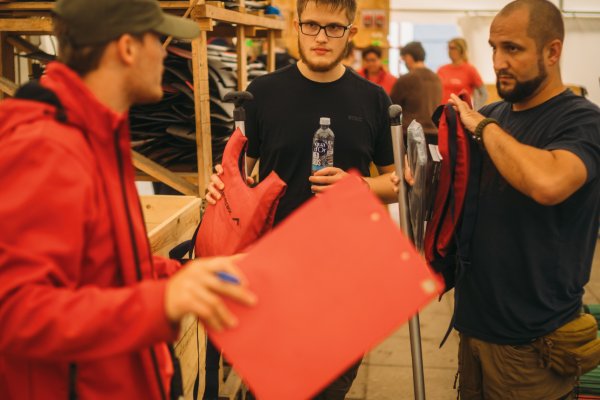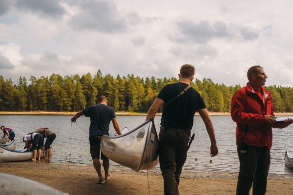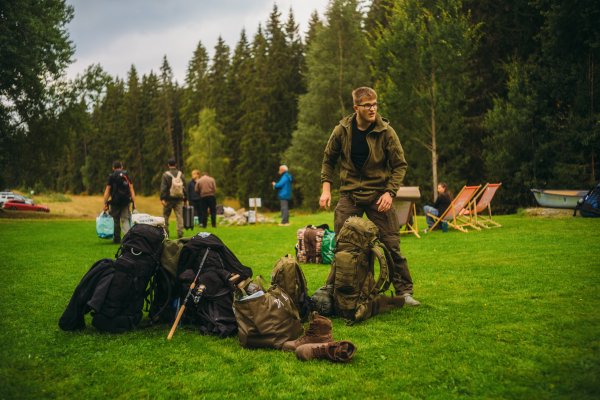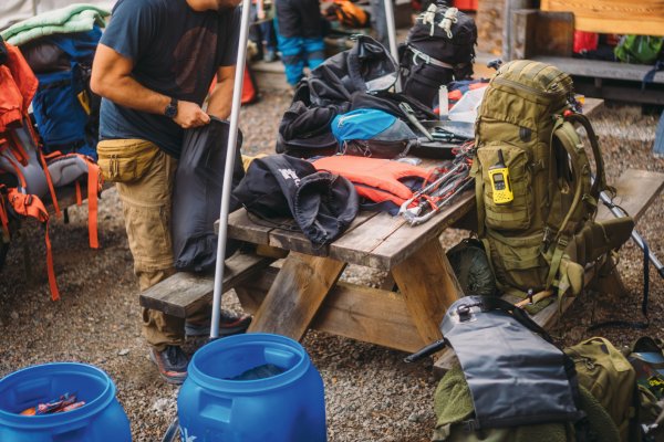 Wir erhielten unser gebuchtes "Light"-Paket, welches im Wesentlichen aus zwei Kanus und zwei geräumigen, wasserdichten Containern bestand. Einer davon war leer und wartete auf unser Gepäck, der andere war bereits mit nützlichen Utensilien wie einem Spaten, Müllsäcken und Klopapier gefüllt. Anschließend begann das große Umpacken. Unsere Wechselkleidung für die Rückreise und alles, was definitiv nicht nass werden durfte und nicht unmittelbar gebraucht wurde, wanderte in den ersten Container. Der zweite wurde zu unserer mobilen Speisekammer, gefüllt mit Proviant wie Trockenmilch- und Volleipulver, Mehl, Spaghetti mit Tomatensauce, diversen Tütengerichten, Speck, Beef Jerky, Energieriegeln, Knäckebrot, Marmelade, Ghee, Gänsefett, Kaffee und verschiedenen Tütensuppen. Parallel dazu bereiteten wir unsere beiden Angeln vor, für die wir zusätzlich Angelkarten gebucht hatten. Die Stahlvorfächer wurden montiert und die Köderboxen griffbereit verstaut – wir waren bereit.