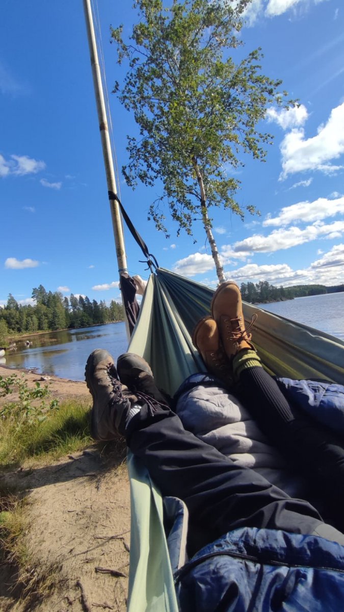 Alles ging langsamer, bewusster: Kaffee kochen dauerte seine Zeit, Feuer machen brauchte Geduld, und selbst die einfachsten Handgriffe wurden zu Ritualen. Gerade das machte den Zauber dieser Woche aus – das Leben im Moment, ohne Ablenkung. Wir spürten, wie unwichtig viele Dinge des Alltags eigentlich sind, wenn man nur das Nötigste dabei hat. Besonders wertvoll war das Jedermannsrecht: Wir konnten unser Zelt dort aufstellen, wo es uns gefiel. Gleichzeitig war es uns wichtig, jeden Platz so zu verlassen, wie wir ihn vorgefunden hatten – achtsam und respektvoll gegenüber dieser einzigartigen Natur.