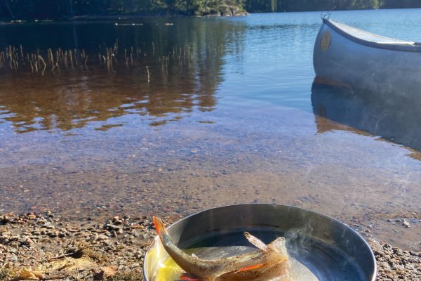 Ein Höhepunkt war der Fang eines großen Hechts. Wir haben lange überlegt, ob wir ihn wirklich zubereiten sollen. Schließlich entschieden wir uns für das Abenteuer. Wir filetierten den Fisch, den wir liebevoll Hecht Hector tauften, brieten ihn über dem Feuer und kombinierten ihn mit selbst gesammelten Pfifferlingen. Ein Mahl, das zugleich lehrreich und köstlich war – und uns zeigte, wie nah man hier mit der Natur lebt. Jeden Morgen sammelten wir Heidelbeeren für unser Porridge – das Highlight in unserem morgendlichen Frühstück oder zu leckeren Pancakes.
