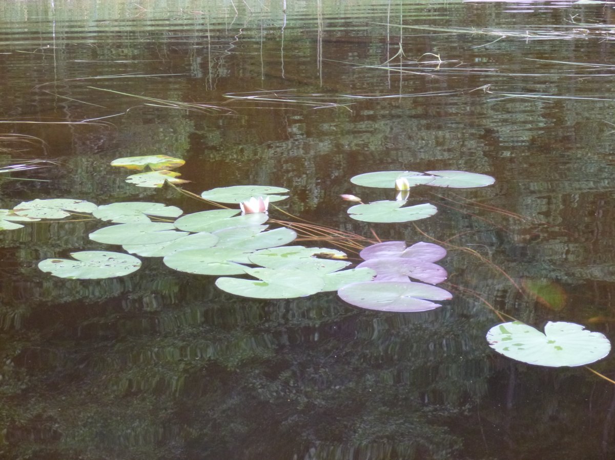 Mit einem komischen Gefühl fahren wir zur Schleuse. Als ich die Tickets bei dem Schleusenwärter kaufe (12 Euro für hin und zurück), frage ich ihn, ob es überhaupt möglich ist, mit einem Kanu da durch zu fahren ohne gekillt zu werden. Er lacht und sagt, wir sollen uns einfach an die Anweisungen halten, dann kann nichts passieren. Das schwere Tor öffnet sich und wir fahren in die erste Kammer. Zwanghaft versuchen wir uns mit den Paddeln an der Seite abzustoßen, um in der Mitte zu bleiben. Mein eigentlich sehr furchtloser Freund schreit mir zu „Abstoßen, abstoßen“. Wenn wir das jetzt eine halbe Stunde so durchhalten müssen, sind wir danach zu nichts mehr zu gebrauchen. Wir stoßen uns also verzweifelt von der Seite ab, bis uns der Schleusenwärter zuruft „Jetzt lasst euch doch mal nach rechts treiben“. Als wir auf der rechten Seite sind, ist alles ganz entspannt. Wir bekommen Seile zugeworfen, aber an denen muss man sich einfach nur festhalten. Nichts vonwegen mit den Beinen das Boot so festhalten, dass das Seil uns in der Mitte hält. Große Boote gibt es auch nicht in der Schleuse, eigentlich gibt es gar keine weiteren Boote in der Schleuse. Und der Schleusenwärter steht die ganze Zeit oben und schaut uns zu. Schleuse fahren ist also gar nicht gefährlich und mein Schissergen merkt mal wieder, dass es etwas übertrieben hat. Es macht sogar richtig Spaß! Von vorne wird Wasser in die Kammer gepumpt und ich fühle mich wie vor einem mächtigen Wasserfall, der uns Wassertropfen ums Gesicht wirbeln. Schon bald ist die erste Kammer geschafft und es geht auf einem 1 km langem Flüsschen zur zweiten Kammer. Der Schleuser kommt schnell zur zweiten Kammer geradelt und lässt uns auch durch die zweite Kammer. Er verspricht uns, dass im Norden eine der schönsten Landschaften ist. Er hat nicht zu viel versprochen! Das Schleusen hat sich absolut gelohnt. Seidensanftes Wasser, gelbe und weiße Seerosen, Rehkitze, die sich Essen in Gärten klauen, wunderschöne Felsen und rosa und lila Blumen auf den Felsen. Da das Wasser so sauber ist, dass es ohne abzukochen trinkbar ist, habe ich das Gefühl als wäre jeder Paddelschlag unglaublich erfrischend...Als würde man selbst jedes mal in dieses saubere Wasser eintauchen. Alles ist so schön und sanft, dass ich mich traue meine Kamera aus dem wasserdichten Beutel zu holen und um den Hals zu hängen.
