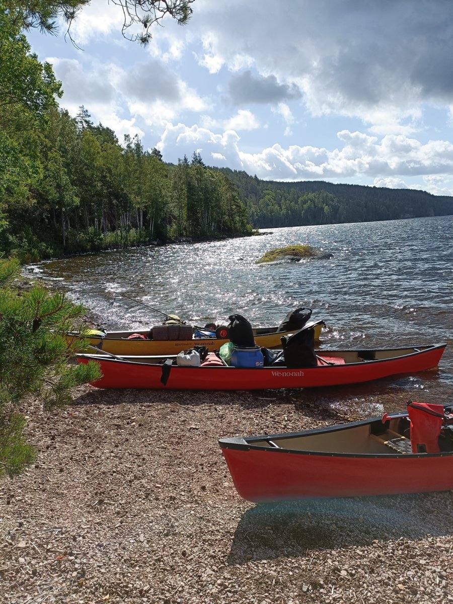 Kanufahren und Schweden. Zwei Dinge die ganz wunderbar in meinen Ohren klingen und deshalb dieses Jahr auf Platz eins unserer Reiseliste gelandet sind. (Nachdem Nina allerdings immer noch strahlt wie ein Honigkuchenpferd nach ihrem Surfurlaub in Frankreich von vor ein paar Wochen, müssen wir uns fast ein wenig anstrengen um genauso gut abzuschneiden) Die Kanutour läuft über eine Organisation. Wir erhalten für eine Gruppe von 4 Personen zwei Kanus, Verpflegung und Ausrüstung vor Ort. Bis auf die Bedingungen, dass wir jeden Tag den Campingplatz wechseln müssen, bestimmen wir die nächsten Tage unser Programm selbst.