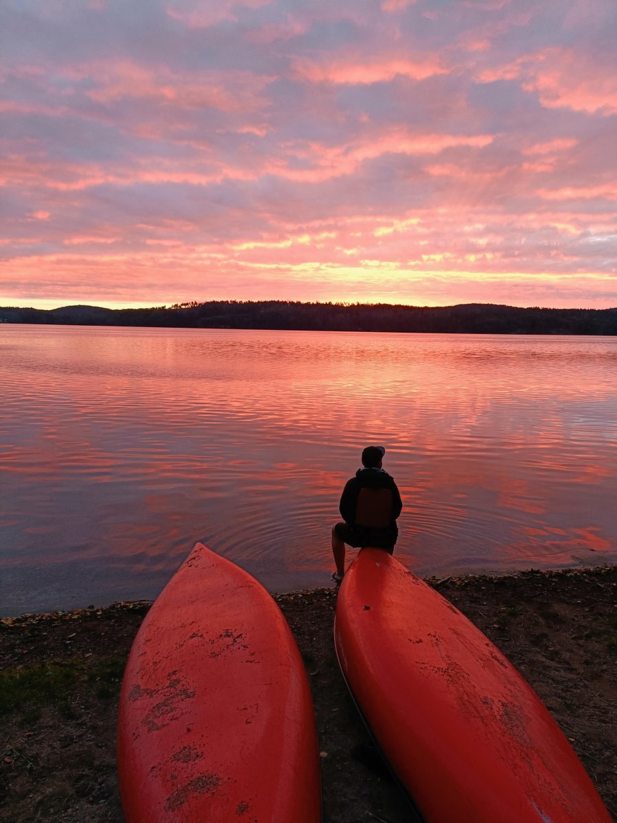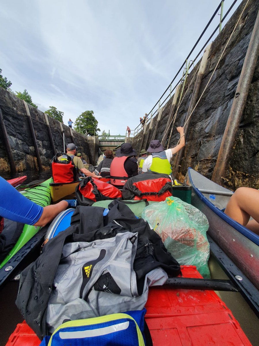 Am Vorabend noch begeistert von der Idee eine Sonnenaufgangstour zu machen, quälten wir uns heute morgen um so mehr aus unseren Schlafplatz - Hängematten unter dem Sternenhimmel. Der Weckruf ein wortwörtlicher Weckruf. Die Aussicht war das Aufstehen auf jeden fall Wert, auch wenn das ein kleine Schlaftirade nach sich zog als wir unseren heutigen Rastplatz erreichten. Übersetzen, Übersetzen & Übersetzen war das Motto des heutigen Tages, da die Schleusen zwei Tage nach unserer Ankunft schlossen. Ganze vier Mal hieß es heute Kanu, entladen, raus heben, … Unserer Rastplatz ein ehemaliges Wikinger-Grab ist nur ein Katzensprung vom Basis- Camp entfernt an dem wir morgen früh unsere Kanus mit Ausrüstung zurück geben. Ein Glück der Brösel Tee geht zu neige