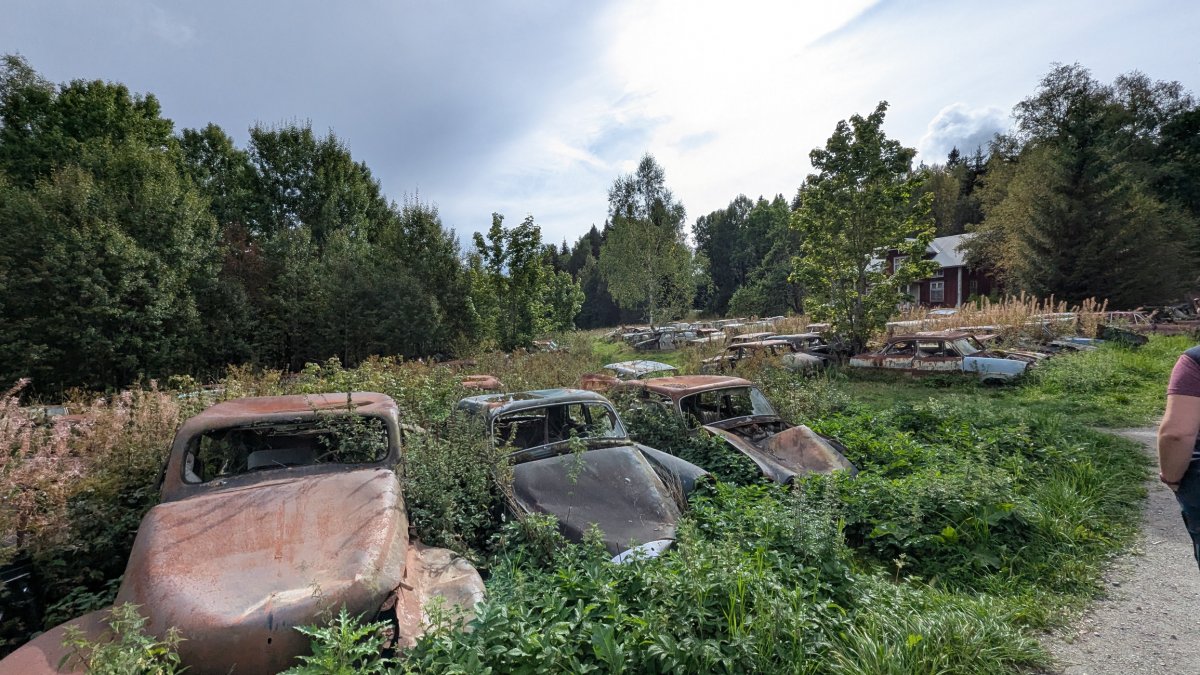 Der Anblick des verlassenen Schrottplatzes mitten im Wald war wirklich beeindruckend und unwirklich. Eine unzählbare Menge alter, rostiger Autos zog sich endlos durch das Dickicht. Manche Ecken wirkten wie die perfekte Kulisse für einen Horrorfilm.