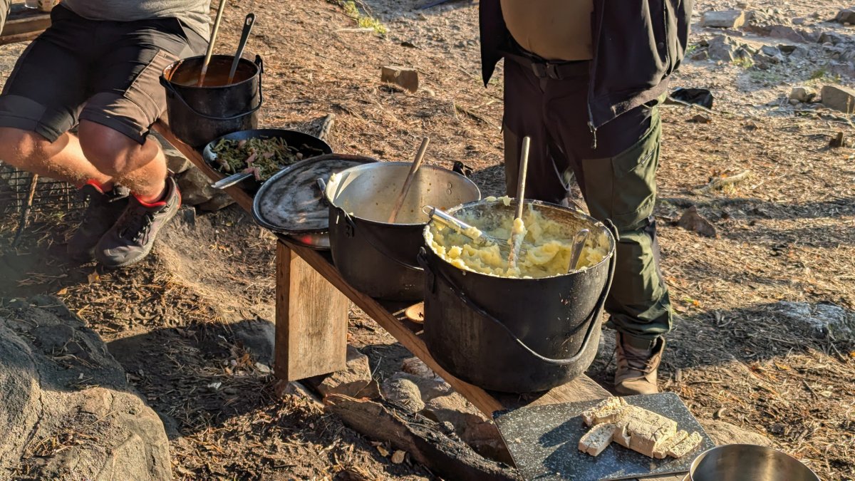 Der vierte Tag begann vielversprechend: Obwohl es in der Nacht leicht geregnet hatte, verzogen sich die Wolken pünktlich zum Sonnenaufgang. Mit einer spürbaren Routine bereitete die Gruppe das gemeinsame Frühstück zu. Alle brachten sich ein und der Tag begann sehr entspannt.