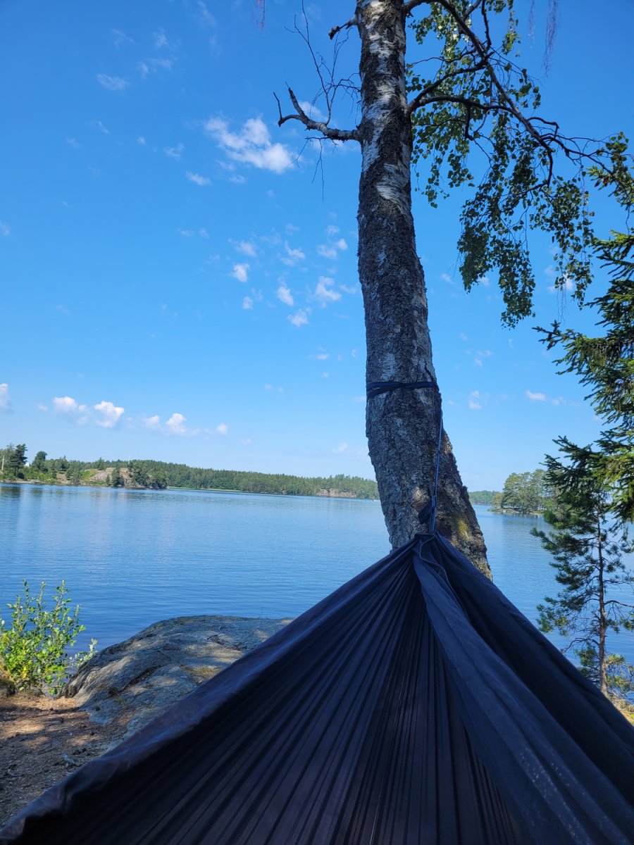 Besonders schön waren auch die Abende. Nach einem langen Tag auf dem Wasser suchte ich mir meist ein kleines Fleckchen am Ufer, baute das Zelt und meine Hängematte auf und sammelte Holz für ein Lagerfeuer. Es dauert meist nicht lange, bis ich andere Reisende traf, die ebenfalls auf Tour waren. Gemeinsam am Feuer zu sitzen, Geschichten auszutauschen und das dunkler werdende Tageslicht über dem See zu beobachten war unbezahlbar. Es entstanden schnell Bekanntschaften, man sah sich hin und wieder mal und trotz der individuellen Routen hatte ich stets das Gefühl, Teil einer Gemeinschaft zu sein.