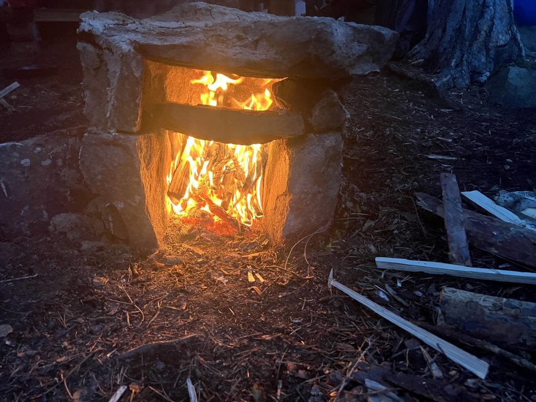 weiter in den Wald hinein fanden. Wir bauten am heutigen Mittwoch eine Schwitzhütte, die wir