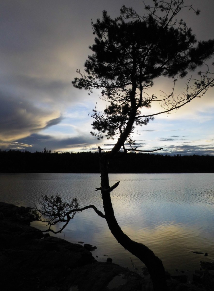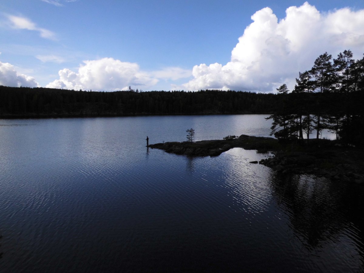 Am 22. August 2014 hieß es für meinen Freund und mich: Warmes Bett und Dusche ade – hallo Wildnis! Unser erster Schwedenurlaub stand bevor. Eigentlich wollten wir diesen auf eigene Faust machen, aber mangels Erfahrung mit Outdoor-Urlauben wie diesem wollten wir die Sache doch lieber in die Hände erfahrener Leute legen. Und so landeten wir bei Scandtrack! Die Hinfahrt war, wie 18-stündige Busreisen eben so sind: anstrengend und relativ schlaflos. Aber die Stimmung war gut, der Busfahrer lustig und das mitgebrachte Lunchpaket riesig. So ließ es sich gut aushalten! Etwas müde wurde man mit der Zeit zwar, aber die Vorfreude hielt uns wach. Noch konnten wir uns trotz Einführungsvideo gar nicht vorstellen, wie so eine Woche in der Wildnis aussehen würde. Würden wir überhaupt unser Camp finden? Was würden wir tun, wenn es nur regnete? Würde das Essen halbwegs schmackhaft oder die ganze Tour eher ein Diättrip werden? Und gab es auch wirklich keine gefährlichen Tiere dort? All das ging uns durch den Kopf, bis dann endlich Lennartsfors auf den Schildern stand. Von dort aus war es auch gar nicht mehr weit bis zum Basiscamp. Da ging dann das Gewusel los. Wer muss wo hin? Haben wir auch alle Unterlagen beisammen? Sind wir überhaupt im richtigen Camp…? Ja, wenigstens das war relativ schnell klar. Nach einiger Verwirrung erreichten wir dann auch unseren Bestimmungsort und dort, gestärkt von einer letzten warmen Dusche, ging es dann ans Abholen der Ausrüstung. Wegen des eigenen Rastplatzes bekamen wir zwei Säcke Feuerholz extra – vier insgesamt. Dazu die schwere Lebensmitteltonne, der Eimer mit frischem Obst und Gemüse, die Werkzeugkiste und unsere beiden Rucksäcke. Einmal vor dem Kanu stehend kam da schnell die Frage auf: Wie um Himmels Willen soll das alles in dieses eine Boot passen?! Aber Wunder gibt es immer wieder, und es passte alles hinein, uns eingeschlossen. Ziemlich schwer beladen tuckerten wir los, zunächst etwas unbeholfen herumpaddelnd, aber bald waren wir ein gutes Team. Außer ein paar kleinen Schauern hatten wir auch schönes Wetter und so erreichten wir dann sogar halbwegs trocken unsere kleine Insel „Tullön“. Ein passender Platz für unser Zelt war schnell gefunden – es gab nämlich nicht allzu viele Möglichkeiten. Auch dort, wo wir unser kleines, rotes Zuhause für die nächste Woche dann aufstellten, machten ein paar dicke Wurzeln das Schlafen zum Abenteuer. Aber das war eben Wildnis, und genau das wollten wir ja. So ließen wir uns unsere erste Outdoor-Mahlzeit am Lagerfeuer schmecken, genossen die Aussicht und das Gefühl, angekommen zu sein. Man hatte tatsächlich das Gefühl, man sei auf einer einsamen Insel – sehr romantisch! Mit diesem Gefühl schliefen wir dann auch bald ein.