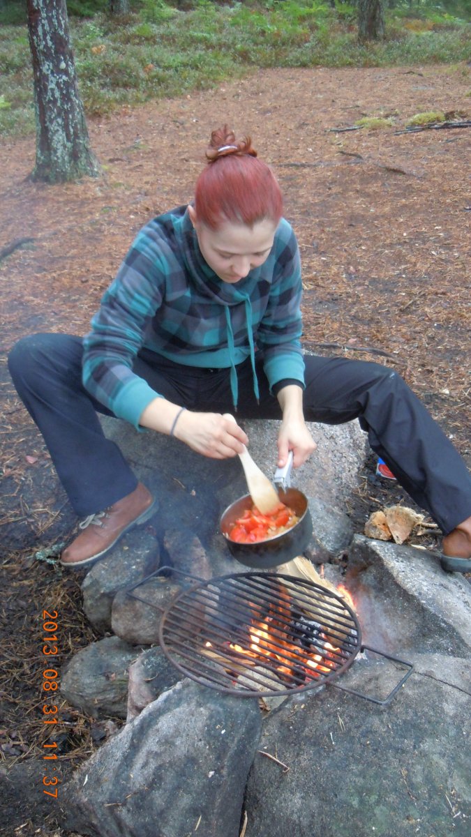 Nun ja, nach dieser Aktion starteten wir die Nächste: Essen kochen. Heute stand ein Eintopf auf dem Speiseplan. Eigentlich genau das was die anderen gestern gemacht hatten Das ging deutlich schneller als die Bratkartoffeln und lecker wars auch noch! Danach hatten wir noch richtig viel Zeit. Wir haben also die Insel erkundet, uns den Sonnenuntergang angeschaut, Preiselbeeren gesammelt und ich habe (mal wieder) versucht Steinpilze zu finden. Leider (wie immer eigentlich) ohne Erfolg. Naja, da wir beide keine Pilzkenner sind, haben wir den einzigen Pilz, der eventuell ein Steinpilz war, dann aber auch lieber nicht verspeist… Preiselbeeren allerdings haben wir einige gefunden.