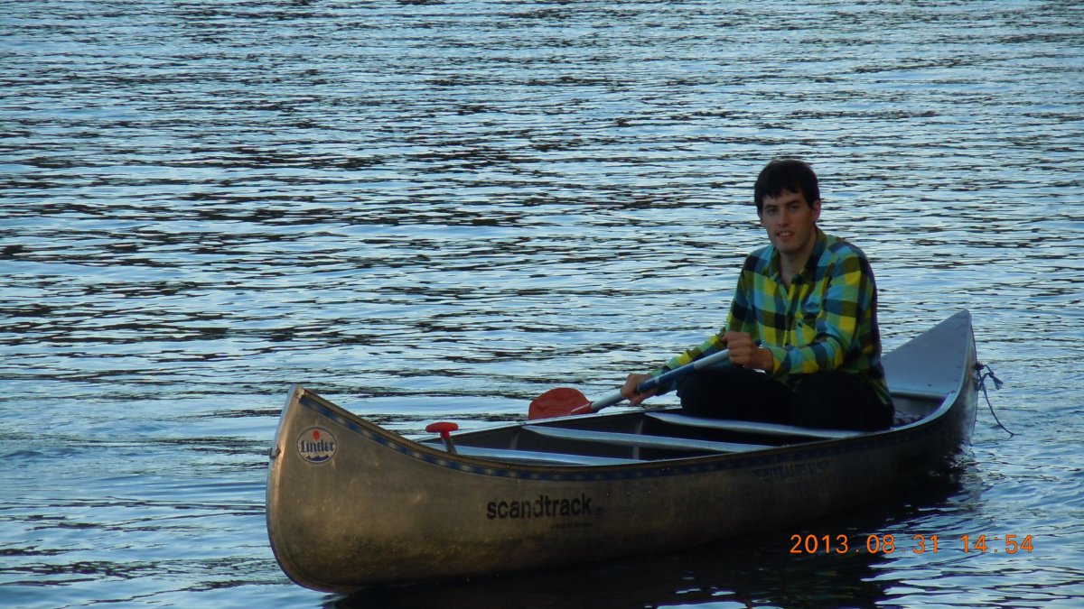 Nach dem wir nun das Kanu beladen hatten, mussten wir es erstmal ins Wasser kriegen, denn wir hatten den dummen Anfängerfehler gemacht und das Kanu noch halb an Land beladen… Aber Tajo schaffte es das Teil hochzuheben und möglichst schonend ins Wasser zu schieben, sodass wir dann vom Steg aus einsteigen konnten. So, geschafft, dachten wir uns… Aber eigentlich ging es ja grade erst los. Jetzt mussten wir uns auch schnell überlegen in welche Richtung wir lospaddeln und nach einem sehr flüchtigen Blick auf die Karte entschieden wir uns für eine Tour, auf der wir zwar nicht die gleiche Strecke würden zurückpaddeln müssen, aber an 2 Stellen mehr als 2 km das Kanu würden umtragen müssen. Dies sollte uns jedoch erst ein paar Tage später auffallen… Einen Kanuwagen hatten wir schlauerweise als unnötig betrachtet. Nun ja, dazu später mehr…