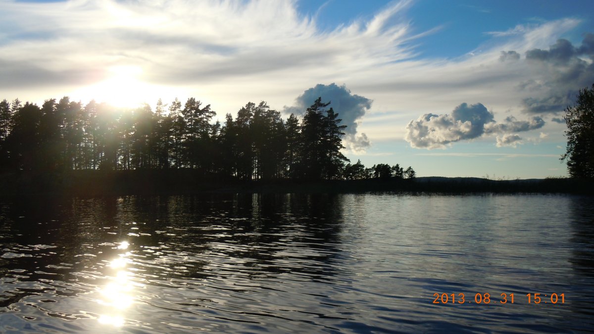 Dann packten wir unsere Sachen zusammen und versuchten sie so weit wie möglich vom Sand zu befreien. Die letzten Kilometer zum Basiscamp paddelte Tajo bei schönstem Sonnenschein und ruhigster See. Dort angekommen luden wir alles aus und schleppten es zur Wiese wo dann alles abgenommen und wieder einsortiert wurde. Nachdem wir das alles erledigt hatten wanderten wir durch den Wald zurück und entspannten uns bis zum Abendessen halb in der Sonne und halb im Schatten. Zum Abendessen gab‘s Fleischklößchen mit Kartoffeln und Preiselbeergelee. Dann ging es schon los in den Bus und auf die Heimfahrt.