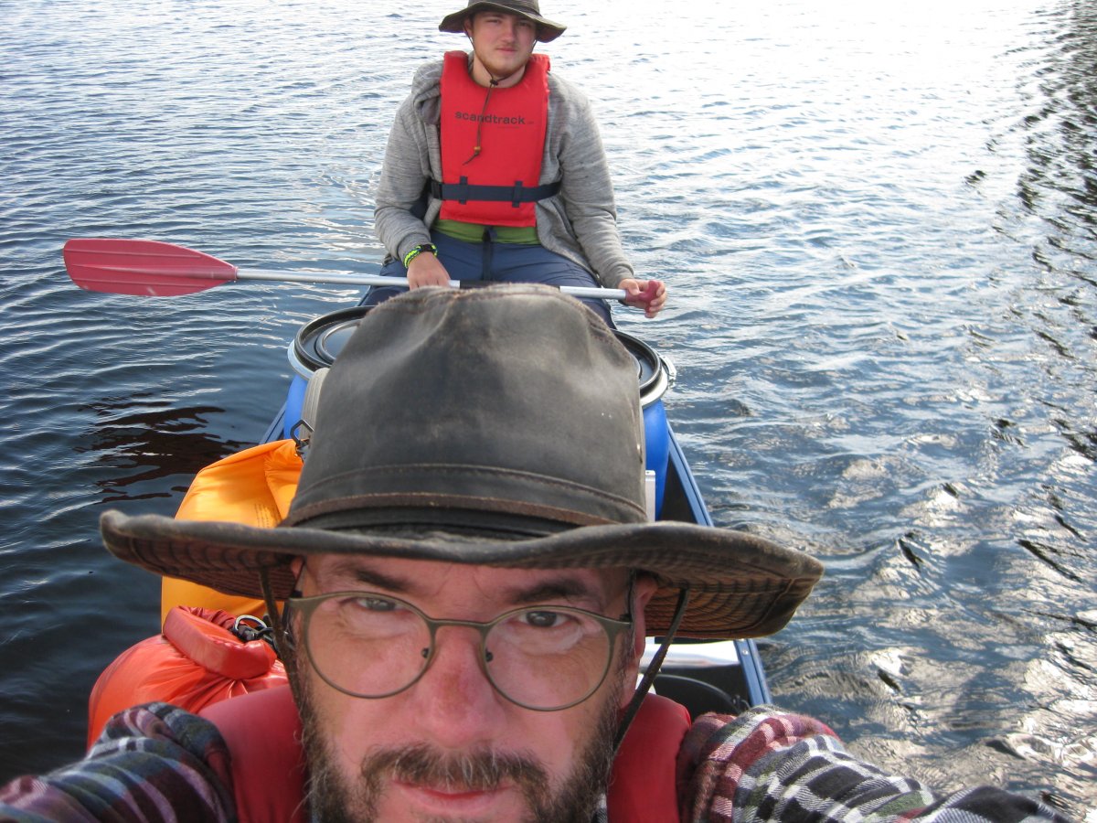 Dort angekommen mussten wir dann noch bis 12 Uhr warten bis der nächste Bus uns zum Camp in Glaskogen brachte. Dort nahmen wir unsere Ausrüstung und die Boote entgegen, packten alles zusammen und machten uns mit guten Gegenwind und Wellen auf zu unserem ersten Rastplatz 24. Hier gab es einen kleinen Flusslauf der aber nicht floss sonder überwiegend aus kleineren Pfützen bestand wodurch an diesem Platz sehr viele Mücken vorhanden waren. Nach unserer ersten Nacht in der grandiosen Natur ging es dann nach dem Frühstück weiter zum Platz 26. Natürlich wieder mit Gegenwind. An diesem Platz gab es ein kleines Haus mit Schlafmöglichkeiten für 4 Personen. Zwei aus unserer Gruppe endschieden sich im Haus zu übernachten. Am kommenden Morgen fuhren wir dann zu unserer ersten Umtragung da wir vom Övre Gla auf den Stora Gla wechseln wollten um dort zum Platz 16 zu fahren. Nach dem umtragen erwartete uns wieder viel Gegenwind und hohe Wellen weswegen wir zunächst überlegten zum Platz 7 zu fahren. Da wir dann aber die Wellen mehr seitlich bekommen hätten fuhren wir doch wie geplant Richtung 16. Laut Karte sah es so aus als könne man den Platz über einen Flusslauf erreichen. Dort angekommen mussten wir leider feststelle das dieser zugewachen und nicht befahrbar war. Deshalb endschieden wir weiter zu fahren und steuerten den Rastplatz 14 an der auf einer Anhöhe liegt. Von dort ging es dann am nächsten Tag weiter zum Platz 12. Natürlich wieder mit Gegenwind und der Freude im Herzen das wir ab dem nächsten Tag wieder zurück Richtung Basislager fahren würden und ab dann Rückenwind haben sollten. Am Platz 12 trafen wir 3 Schweden die als Wanderer unterwegs waren und die letzte Nacht dort verbracht hatten aber jetzt weiter wollten. In dieser Nacht bekamen wir den ersten Regen der eigentlich nicht schlimm gewesen wäre wenn der Wind nicht leicht gedreht hätte.
