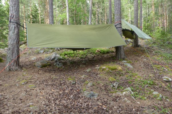 So hing mein Hängematten Setup leider nicht richtig und mein kurzes Tarp über meiner Hängematte hielt den Regen nicht richtig ab wodurch ich mitten in der Nacht durch den Regen in meinem Gesicht geweckt wurde. Um weiter Schlafen zu können und nicht alles nass werden zu lassen improvisierte ich kurzerhand und spannte mein Regenponcho um meine Hängematte der den Rest der Nacht weiteren Regen abhielt. Am kommenden Morgen war alles schnell getrocknet und es ging weiter Richtung Platz 7. Leider wieder mit Gegenwind da dieser in der Nacht gedreht hatte. Am Rastplatz 7 stand leider kein Unterstand mehr da dieser abgebrannt war. Ein Hinweisschild wies darauf hin das ein neuer Unterstand in Arbeit sei. Am darauf folgenden Tag ging es dann wider mit einer Umtragung zurück auf den Övre Gla und zum Platz 53 den wir in dieser Nacht mit einer Dänischen Familie teilten. Den letzten Tag verbrachten wir dort und fuhren nach dem reinigen unseres Equipments gegen späten Nachmittag zum ersten Mal ohne Wind und Wellen zurück zum Basislager um dort die letzte Nacht zu verbringen. In dieser Nacht fing es dann an zu regnen und dieser Regen begleitete uns dann den ganzen Tag über bis zu unserer Rückreise mit dem Bus. Im großen und ganzen hatten wir echt Glück mit dem Wetter da von Dienstag an eigentlich Regen gemeldet war der aber Tagsüber ausgeblieben war wodurch wir vom Wind abgesehen eine sehr schöne Tour gefahren sind.
