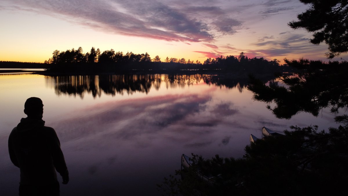 Kurze Zeit später ging es dann noch mal ca 1,5 Stunden weiter mit dem Bus nach Glaskogen, wo wir in die Kanus und die Ausrüstung eingewiesen wurden.Dann ging das Abenteuer auch schon los.An den ersten 3 Tagen hielten wir uns auf dem Övre Gla auf, dieser See ist etwas kleiner als der Stora Gla und man muss vom Startpunkt zunächst ein kurzes Stück über Land.Nach kurzer Eingewöhnung auf den Kanus haben wir unser erstes Shelter angefahren und unser Camp aufgebaut.