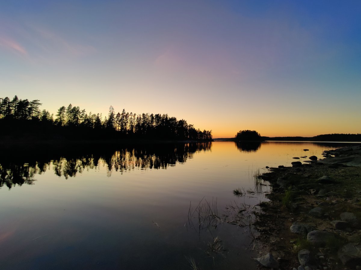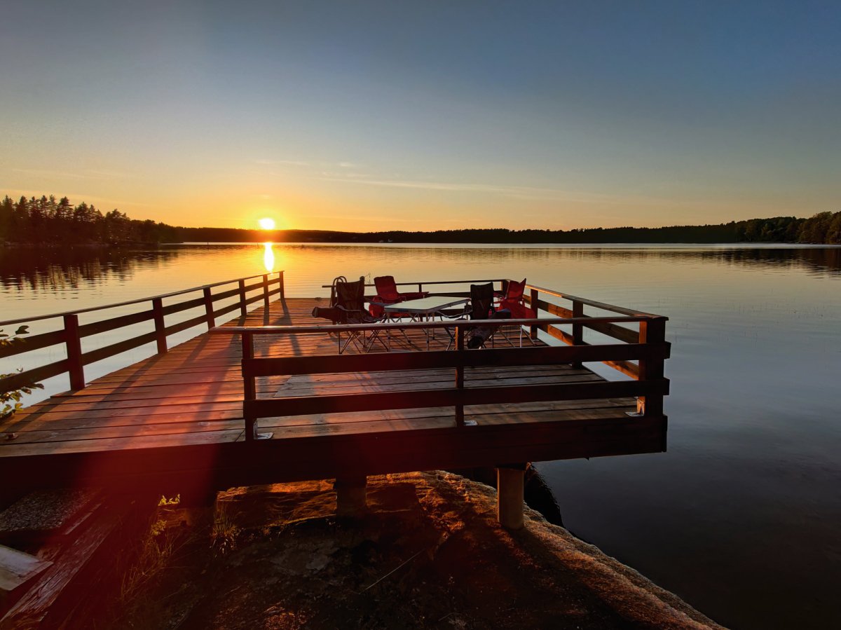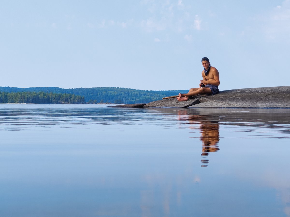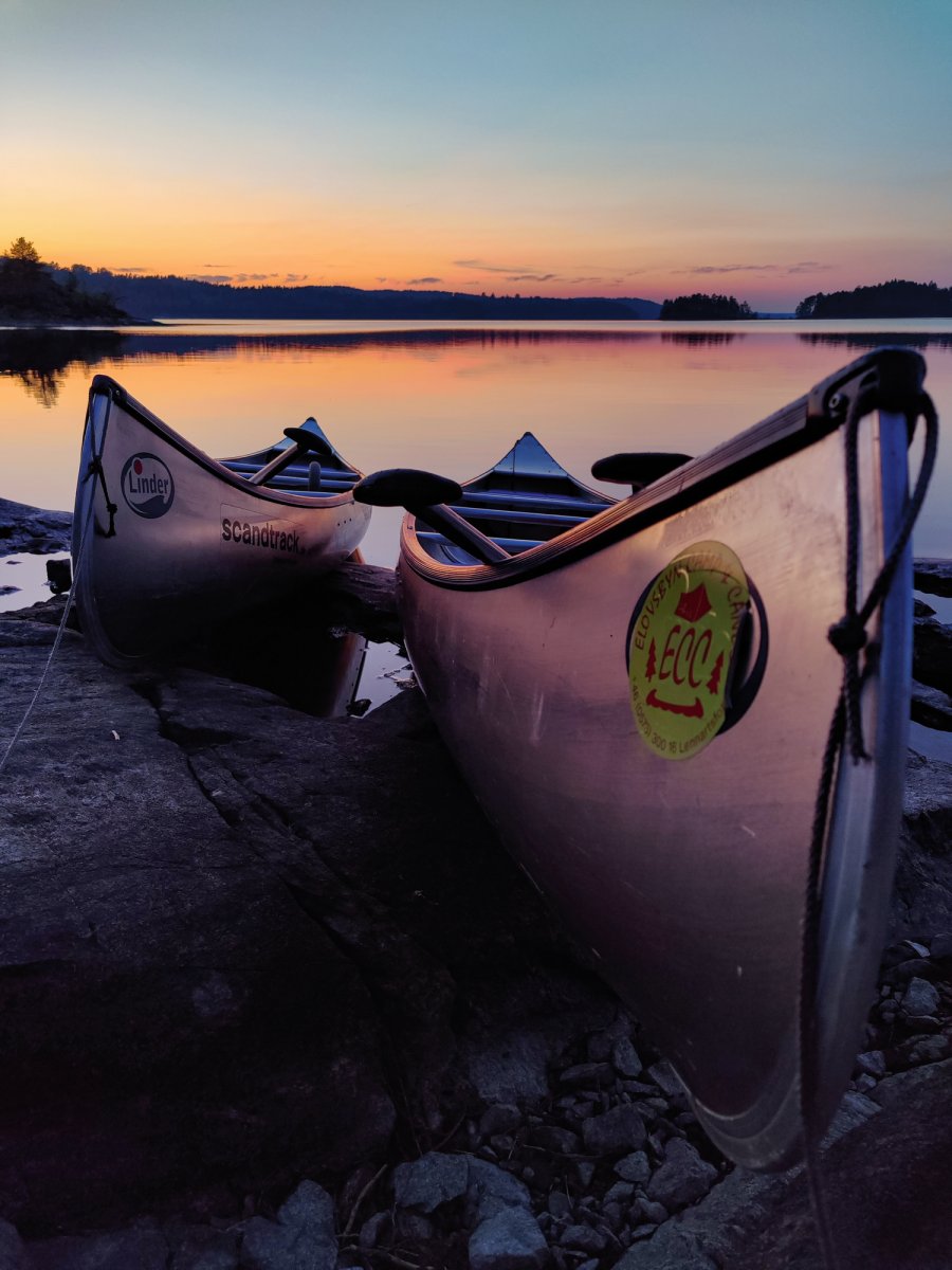 Schön ausgeschlafen und ohne Zeitdruck wachten wir am Morgen in unserer Windschutzhütte auf und richteten uns langsam und gelassen unser Frühstück hin. Heute war nämlich keine weite Strecke auf dem Programm, denn wir wollten nur zu DANO Stelle „Fänadtjuset“ um dort einen entspannten Ruhetag zu machen um uns wieder völlig zu erholen und vielleicht heute Riks Ladekabel zu holen. Als wir dann loskamen und das Ziel schon in Sicht war waren wir erfreut, da die Abenteurer an der Lagerstätte schon zusammen packten. Wir wollten die anderen nicht bedrängen und suchten uns deswegen eine benachbarte Insel und warteten. Als die anderen dann gerade loslegten um weiter zu fahren und wir uns darauf eingestellt hatten mit der Drohne gefilmt einzufahren wurden wir von ein paar Niederländer überholt,welche den Lagerplatz auch schon im Visier hatten und schon mit den anderen Gesprochen hatten. Deshalb mussten wir doch weiter fahren. Nachdem wir 2 weitere DANOS um 5 Minuten verpasst hatten, beschlossen wir auf eine kleine Insel mit Feuerstelle und Toilette zu gehen um dort Zelt und Hängematten aufzubauen. Während Lucas und Jonas sich dann in der Hängematte eine schöne Auszeit nahmen versuchten Rik und Markus währenddessen ihr Glück beim Angeln, leider erfolglos. Nachdem dann alle wieder einigermaßen fit waren, machten wir uns etwas unaufwändiges zum Essen (Reis mit gefüllten Paprika), da wir früh ins Bett wollten, um am nächsten Tag früh aufzustehen, dass wir die DANO Stelle 17 schon früh erreichen können. So aßen wir unser Abendessen schön beim Sonnenuntergang auf den Steinen und gingen danach auch schon bald schlafen.