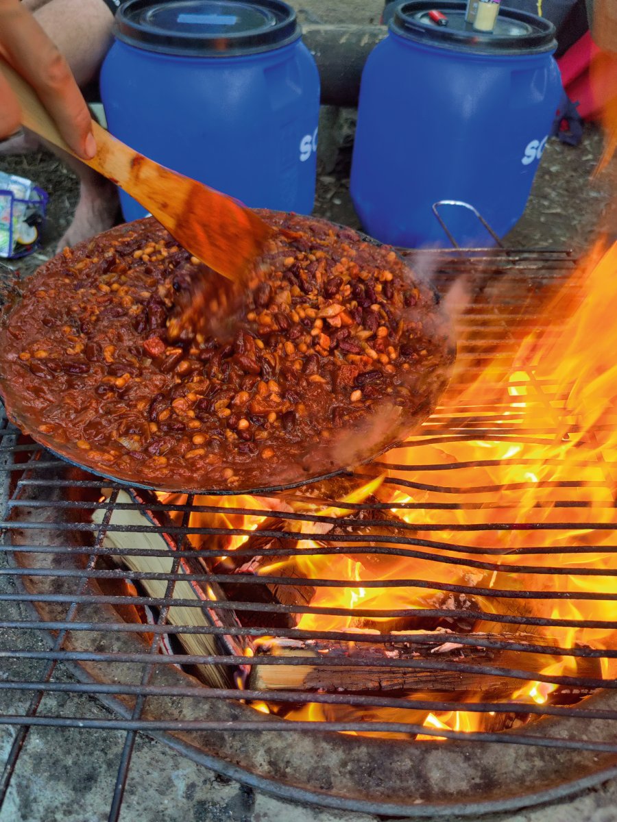 Immer routinierter stand auch an diesem Morgen Jonas vor allen anderen auf um Wasser für Kaffee aufzusetzen. Da das Wasser schon schnell warm war aber die meisten immer noch verschlafen waren dachte sich Jonas er macht auch schon den Kaffee fertig, dass es noch etwas schneller geht. Dies war eine sehr nette Geste, jedoch nahm Jonas statt einem Teelöffel Pulver für jeden Kaffee einen Esslöffel was dafür sorgte das alle sehr schnell wach wurden. Heute war geplant zu einer Stelle zu gehen an der 2 DANO Hütten sehr nah beieinander waren, damit die frisch kennengelernten Franken eine Hütte beziehen konnten und wir die andere. Dafür boten sich die Hütten „Getön Nord“ und „Getön Ost“ an. Nachdem dieser Plan aufging wollten wir zuerst etwas Angeln, als der Himmel dann zu zog spannten wir ein Tarp auf und spielten Karten. Die Nudeln mit Tomatensauce, welche unser Mittagessen darstellten schmeckten sehr gut und waren schnell weg. Als nachmittags das Wetter wieder etwas besser war entschlossen sich Markus und Rik dazu paar Bilder zu machen und gingen auf eine kleine Expedition. Währenddessen versuchte sich Lucas auch mal beim Holz machen, entschied sich aber es in Zukunft wieder Jonas zu überlassen. Später gingen dann alle zusammen noch einmal etwas Angeln. Nach kurzer Zeit mussten wir aber aus einer Zitroneneisteeverpackung eine Schwimmbrille basteln, weil wir Riks versenkten Blinker suchten. Es wurde langsam Abend und wir machten ein Feuer für die Terence Hill Pfanne aus dem Rezeptbuch, welche wir auf unserer Gusseisenpfanne zubereiten wollten. Die Pfanne war ein echter Gaumenschmaus und wir waren überzeugt, dass das unser Lieblingsessen auf der Reise sein wird. Dennoch machten sich die vielen Baked Beans und Kidney Bohnen später bemerkt, was für einen geruchsvollen Abend sorgte. Als das Essen fertig war und der Abwasch erledigt war, wollten wir eigentlich noch zu unseren Freunden und mit ihnen Karten spielen und den Abend ausklingen lassen. Das Wetter machte uns aber leider einen Strich durch die Rechnung und wir gingen schlafen.