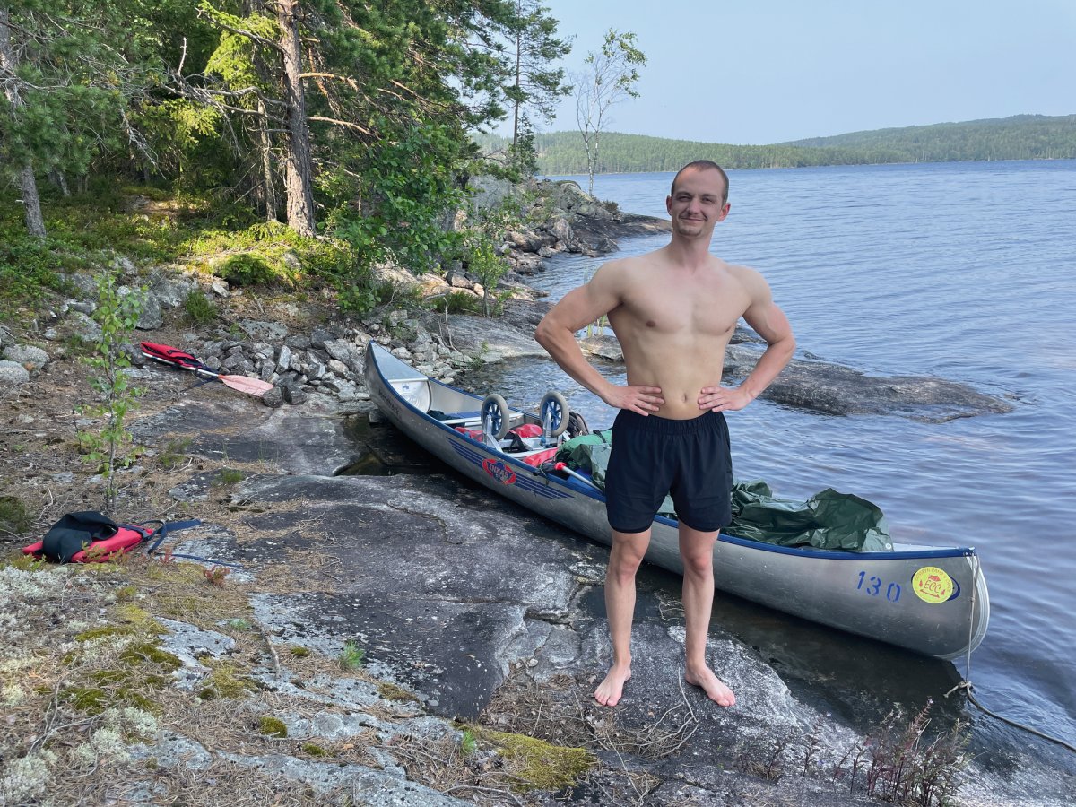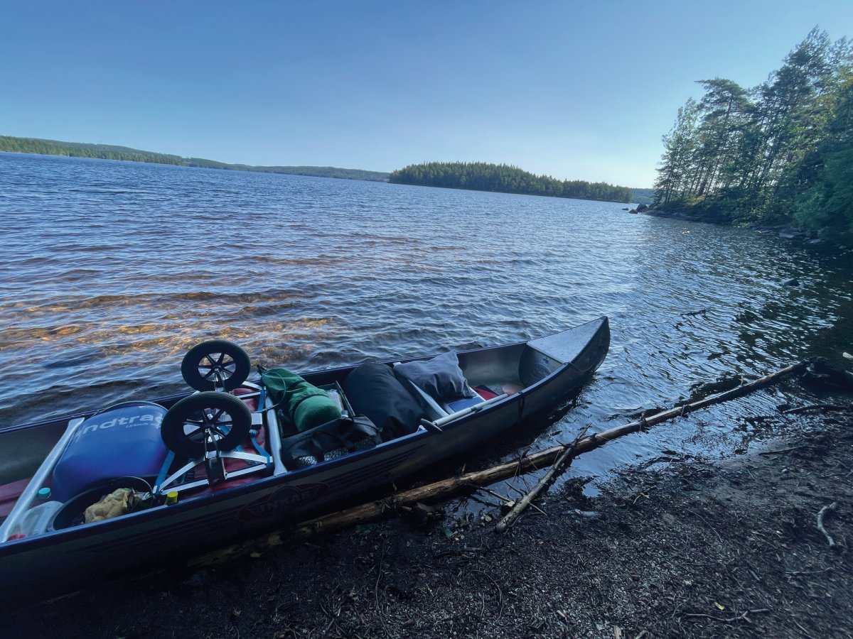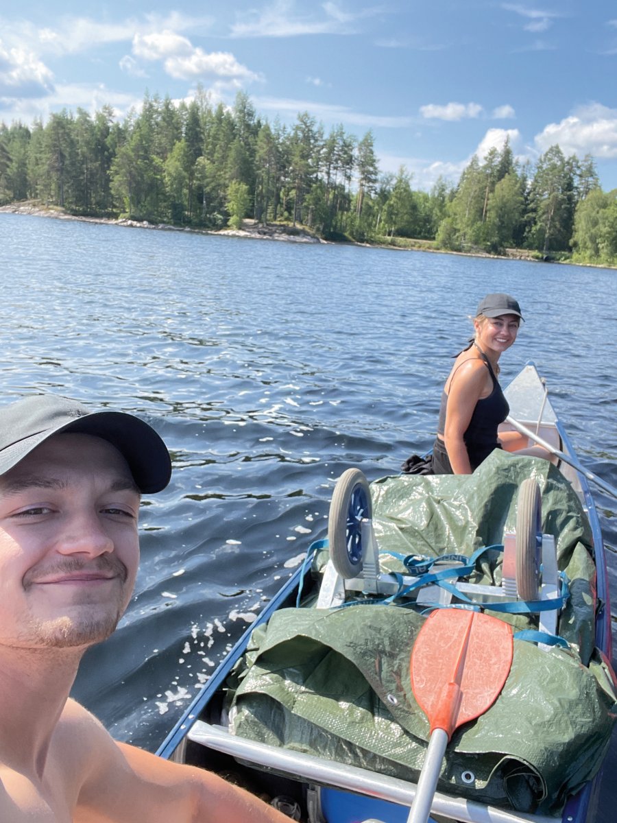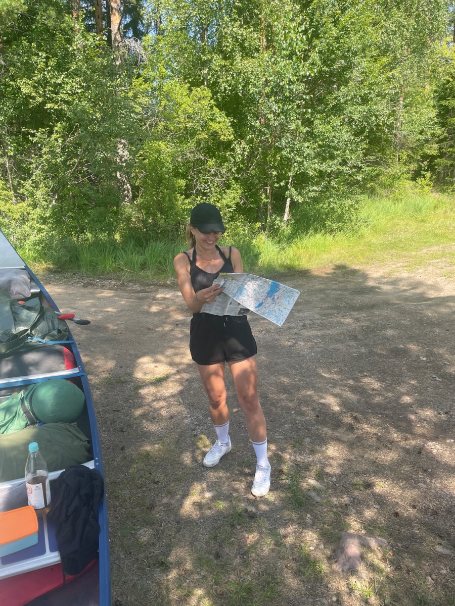 Nach dem ersten, noch etwas hektischen Tag, hatten wir am zweiten Tag das Gefühl in unserem Urlaub angekommen zu sein. Morgens wurden wir im Zelt von den ersten Sonnenstrahlen geweckt und starteten mit einem ausgiebigen Frühstück in den Tag. Gemeinsam planten wir unsere Tagesroute und machten uns auf den Weg. Wir paddelten entlang der Westküste des Övre Gla bis zum ersten Kanuumsetzpunkt in Lennungshammar. Wie auf jeder Reise wurde natürlich ein wichtiges Reiseaccesoires vergessen – Wir erstanden am Campingkiosk noch schnell eine Sonnencreme.