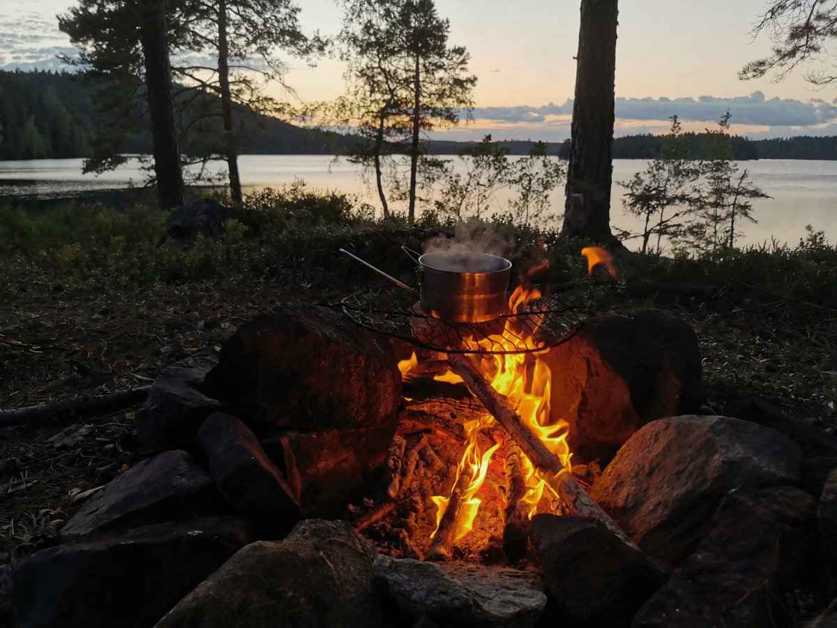 Da wir am ersten Tag nur eine kurze Strecke geschafft hatten, mussten wir in den nächsten Tagen einiges mehr an Kilometern paddeln. Dank unserer Flusskarte konnten wir im Vorfeld schauen, welche Orte für unser tägliches Lager geeignet sein könnten und wir wurden jeden Tag auf ein Neues mit schönen Übernachtungsmöglichkeiten überrascht. Hierbei hatten wir die Wahl zwischen Schutzhütten und Plätzen, die wir uns selbst aussuchen konnten. Jeder Ort, an dem wir übernachteten, besaß etwas Besonderes. So konnte man an einer Stelle ganz viele Blaubeeren pflücken und zum Nachtisch essen, während am nächsten Lagerplatz, die Aussicht auf einen großen See überzeugte.
