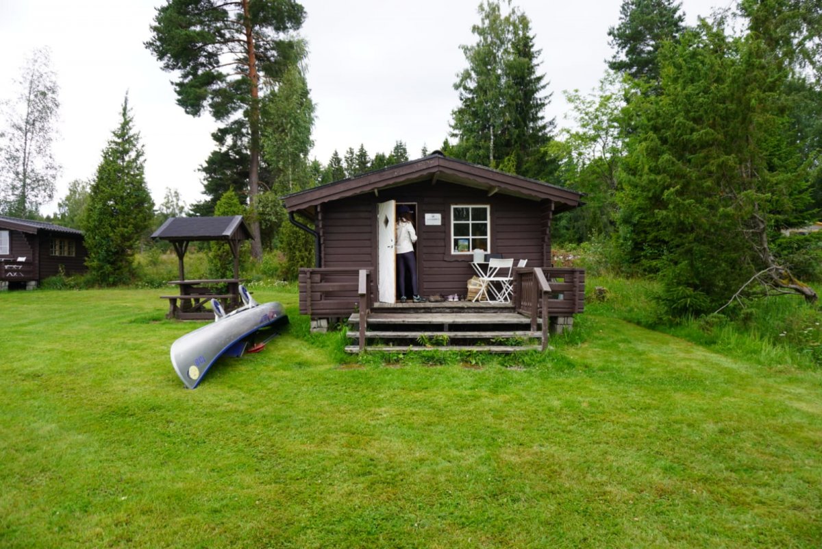 Dann wird die Straße zum Sträßchen, und schließlich zur Schotterpiste. Wir sind da, mehrere andere Busse und der Regen auch. Das Scandtrack Basiscamp ist von Wald umrahmt und begrüßt den erschöpften Reisenden mit Kaffee, Keksen und netten Mitarbeitern. Nach etwas Wartezeit – es müssen schließlich eine Menge Leute mit ihrer Ausrüstung, ihrem Ferienhäuschen oder ihrer Weiterfahrt versorgt werden – haben wir den Schlüssel für unser Häuschen in der Hand. Ferienhäuschen am Foxen nennt es sich. Und tatsächlich, das Häuschen liegt nur wenige Meter vom Seeufer entfernt. In der gemütlichen kleinen Hütte, die mit einer Terrasse mit Seeblick ausgestattet ist, stehen bereits unsere Ausrüstungspakete und die Provianttonnen bereit. Ganz oben drauf: drei Kohlköpfe. Zum Glück sind noch jede Menge andere Sachen in den Tonnen. Nachdem wir uns eingerichtet haben, geht es gleich los in den Wald. Der Wald ist so schön und voll mit Blaubeeren, dass der Regen gar nichts mehr ausmacht. Abends holen wir noch unser Kanu und eine Kanueinweisung ab. Wir sind gerüstet voller Vorfreude für die Woche, die vor uns liegt.