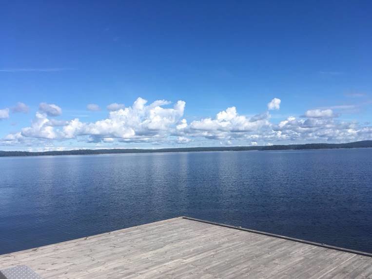 Scheinbar waren wir die ersten die sich auf den Weg gemacht hatten, alle anderen schienen noch am Ufer oder in ihren Zelten zu sein. Erst nachdem wir die letzten zwei Kilometer bewältigten sahen wir dass wir nicht die einzigen waren. Langsam ließen wir das Kanu auslaufen, wir waren an unserem Anfangspunkt in Lennarsfors angekommen. Zwei bis drei weitere Kanufahrer waren ebenfalls schon da und waren dabei ihre Sachen nach oben zu tragen oder das Kanu sauber zu machen. So waren auch wir bereit. Angekommen säuberten wir unser Kanu, gaben dieses ab und trugen unsere Sahen wieder den Berg hoch. Wir konnten unsere Sachen sofort umpacken und mussten nicht mehr viel machen. Wir säuberten noch ein Mal die Töpfe und brachten dann unsere ausgeliehen Gegenstände zurück.