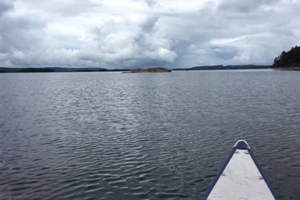 Nachdem wir gefrühstückt hatten packten wir unsere Sachen und machten uns auf den Weg. Heute hatten wir kein Ziel, wir wollten einfach fahren und gucken wie weit wir kommen würden, wir wollten nur nach vorne, nicht mehr zurück und so paddelten wir erst einmal weiter Richtung Dano1 19. Hier waren wir bereits in der ersten Nacht gewesen und wir hatten uns kurz überlegt ob wir weiter paddeln wollten oder doch hier bleiben sollten. Da es noch sehr früh war entschieden wir uns dass wir weiter fahren sollten. Diese Entscheidung war sehr gut gewesen denn je weiter wir fuhren desto ruhiger wurde die See. Spiegelglattes Wasser, Sonne und hin und wieder ein leichter Regenschauer. Na warum ging das nicht schon früher so ? Entspannt fuhren wir weiter, überquerten den kompletten See und hatten stehts die Wolken am Himmel in Blick, welche immer mal wieder dunkler wurden und dann doch auflockerten. Wir hatten neues Wasser von der Mitte des Sees abgezapft und fuhren in Richtung Dano 18. Wenn dort ein freies Plätzchen wäre, so würden wir dort Zelten und den Autofriedhof besuchen.