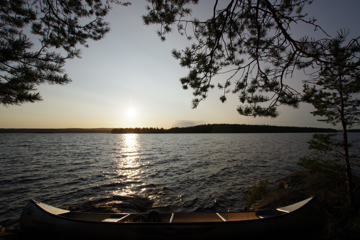 An Tag vier ziehen wir wieder zurück in den großen See. Das heißt, Lager abbauen, darin sind wir aber nun schon geübt und auch die Kinder helfen fleißig bei allen anfallenden Aufgaben mit, alle Kanus zurückfahren, inklusive Gepäck, wieder auf zweimal aber dafür als Bollerwagen und dann geht es weiter. Am nächsten Rastplatz gibt es viel Platz und da es uns hier gefällt, beschließen wir auch hier zwei Nächte zu bleiben.